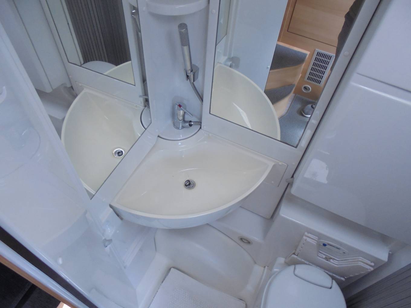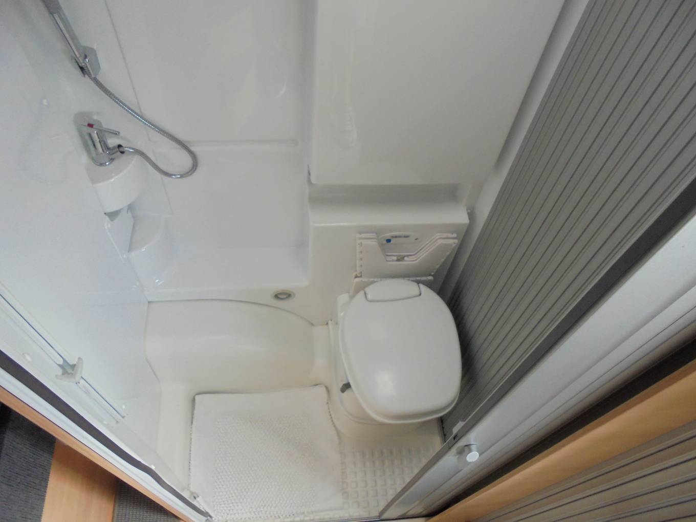 The toilet has a nice feature in that wash-hand basin and mirror folds away to give you more shower room.