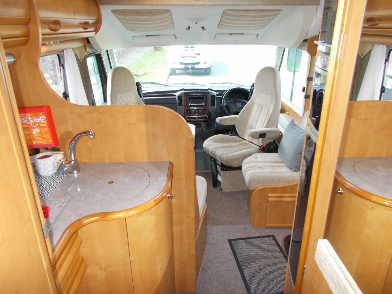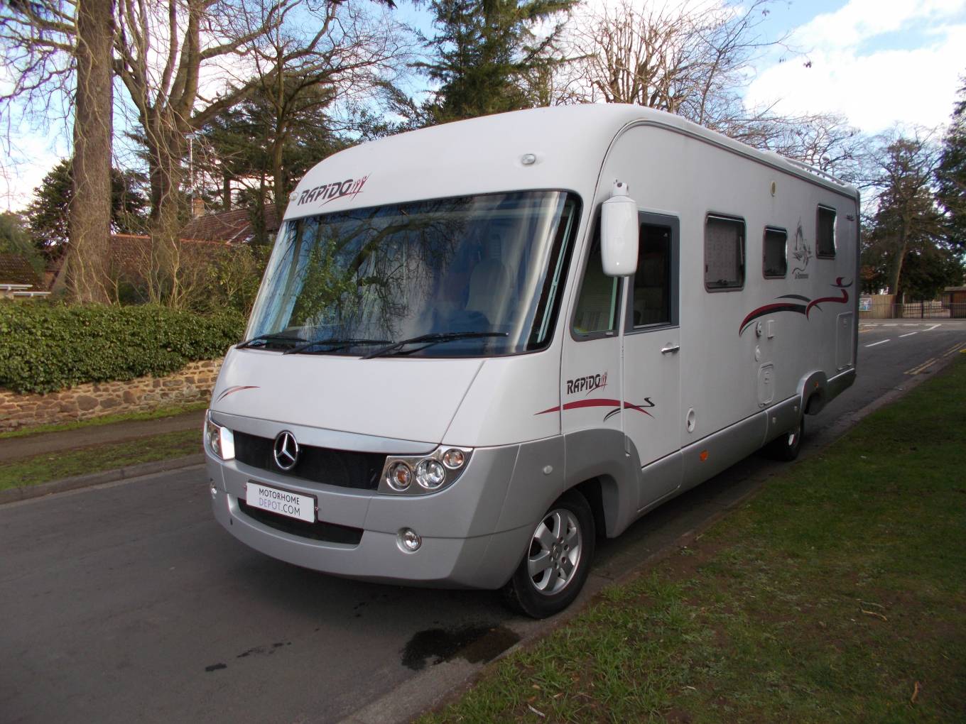 A 2007 Rapido 990M Le Randonneur A Class 4 berth Motorhome. This model is based on a Mercedes chassis with a 3.0 litre diesel engine and an Automatic gearbox offering you ample power and a smooth ride. Two large beds make up the 990M’s sleeping quarters: the main island bed at the rear of the van, and a pull down double at the front. Both are roomy enough, even for two tall adults, and provides you with a very comfortable night’s sleep. The front bed drops down low, allowing easy access and plenty of headroom once you’re in. It’s the rear island bed arrangement that appeals most: shut the door which divides the front and back areas of the van and a real bedroom area is created, complete with two small wardrobes and a headboard behind the bed. Ambient lighting around the area creates a relaxing space, and classy fittings (including good-quality curtains) increase the home from home atmosphere. You also have lots of storage under the bed. Moving forward either side you have a separate wash room with WC, Basin and Vanity unit with a Shower room on the opposite side. You then have a well laid out kitchen area with sink, hob, oven, extractor, fridge freezer and ample storage. At the front is the L-shaped lounge area with its luxurious seats that is neatly separated from the kitchen area. A fold out table which swivels and slides, means there is plenty of leg and elbow room for five to eat in comfort once seated, you also have two comfortable cab seats. These swivel effortlessly to face into the van. Lighting, both natural and electric, is plentiful, thanks to that large windscreen and numerous halogen and ambient lights. Outside the Rapido offers lots of storage with a large garage and two slide out compartments. This vehicle will come with a fresh habitation certificate, 12 months MOT and 12 months warranty. Length 7400, width 2320, height 2860, payload 500kg. Must be seen to be fully appreciated, located in Leighton Buzzard. For extensive photos, further information, or to book a viewing please call Alan on 07525 841 632 or 01327 844 790.