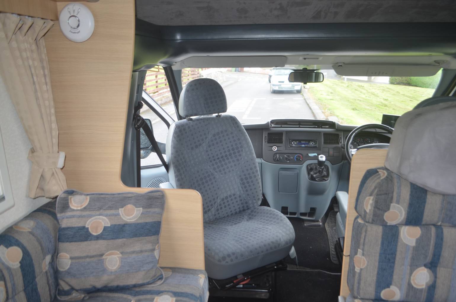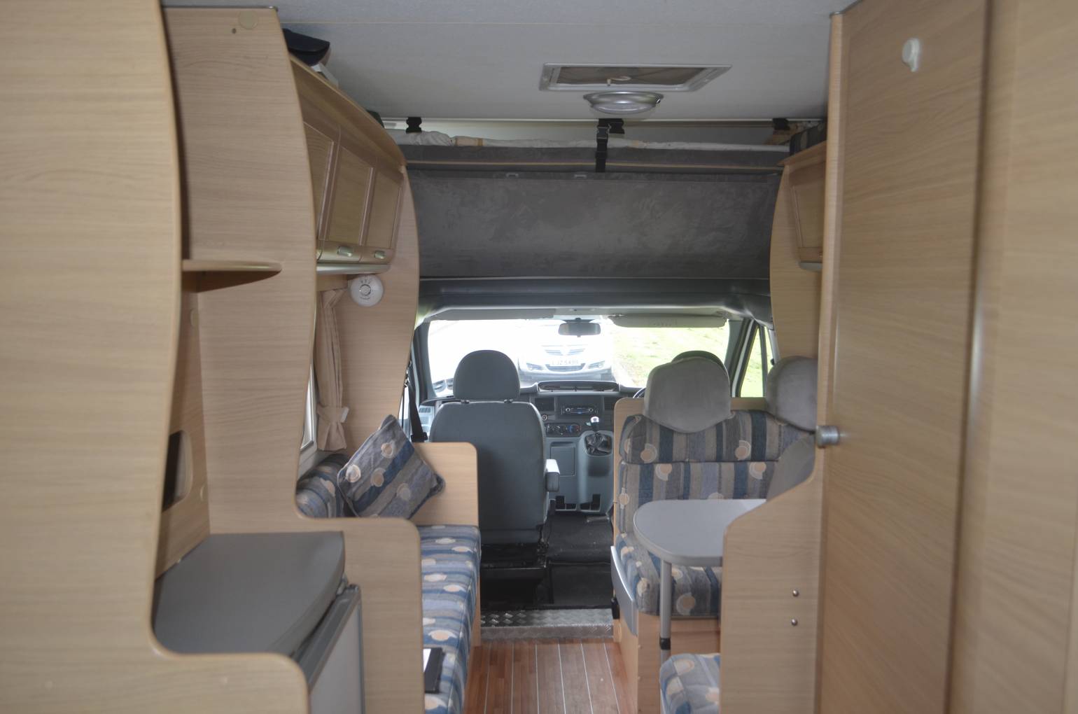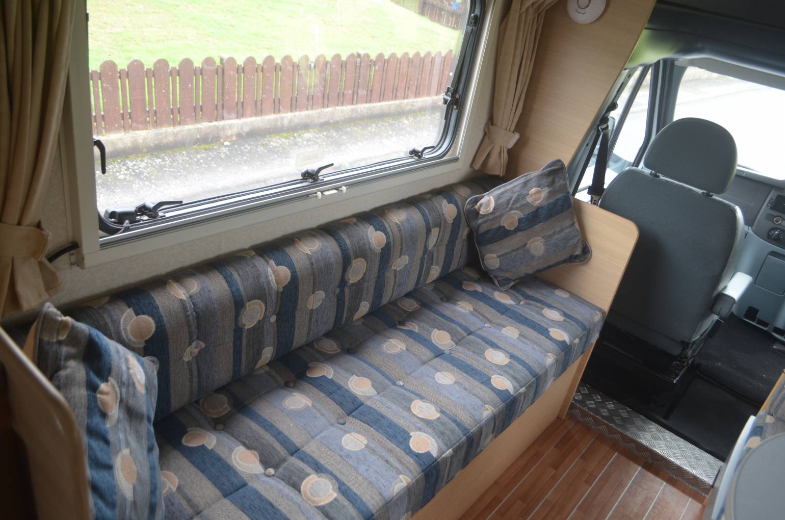 2007 Roller Team Autoroller 500 FOR SALE. Based on a Ford Transit chassis with 2.2 litre engine and 5 speed manual gear box. This Low mileage motorhome is showing 18,329 miles at present. Presented in great condition the Auto Roller will accomodate up to 5 people with 6 travelling seatbelts. Maximum weight is 3500kg. Great layout for a family or couple travelling. The cab area has electric windows, electric mirrors, reverse camera, radio and swivelling captain seat. The popular kitchen layout is at the rear of the motorhome and is equipped with a 3 hob burner, oven, grill, full sized sink, drainer and fridge. Above the cab is a large double bed with a comfortable lounge that easily converts into another double bed. The long bench seat will make up into a single bed. Your lounge area is very spacious with ample storage and wardrobe situated throughout the habitation area. Washroom is at the rear with a wash hand basin, toilet and shower cubicle. This model comes with a wind out awning attached.