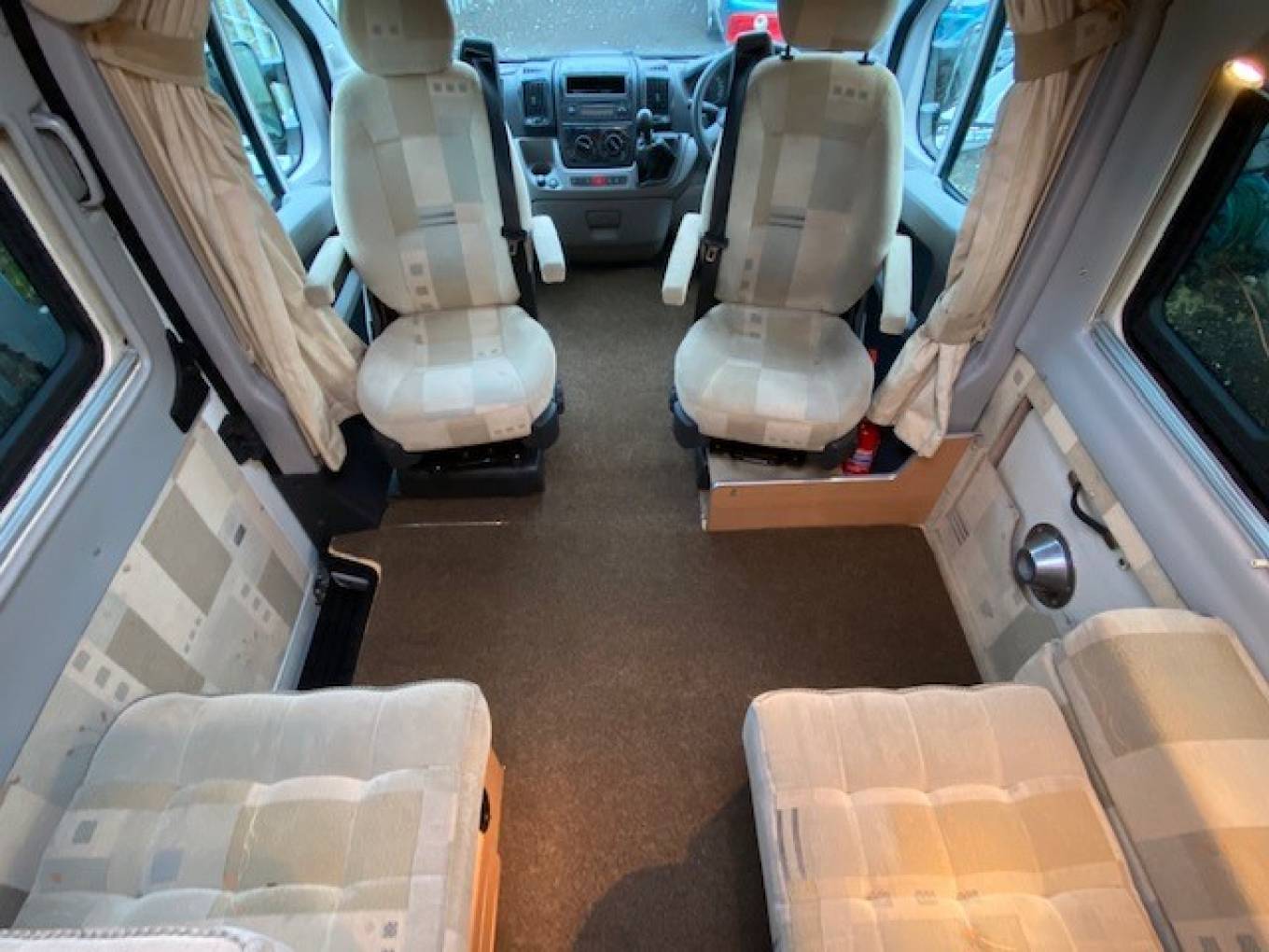 The cab area has a 6 speed manual gear box, radio/cd player, electric windows and mirrors, swivel seats and a privacy curtain. rear windows also have curtains and side windows have blackout blinds and fly screens. A removable carpet is fitted from front to rear.