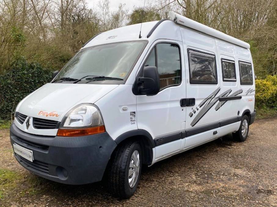 This 2008 4-berth Devon Monte Carlo high top camper van is based on the 2.5 litre Renault Master chassis with a diesel engine and long-legged 6-speed gearbox. It has been in the same ownership for 10 years and has a fantastic maintenance record by way of service history and habitation checks. The current owner has added some useful extras during the period of ownership that include: