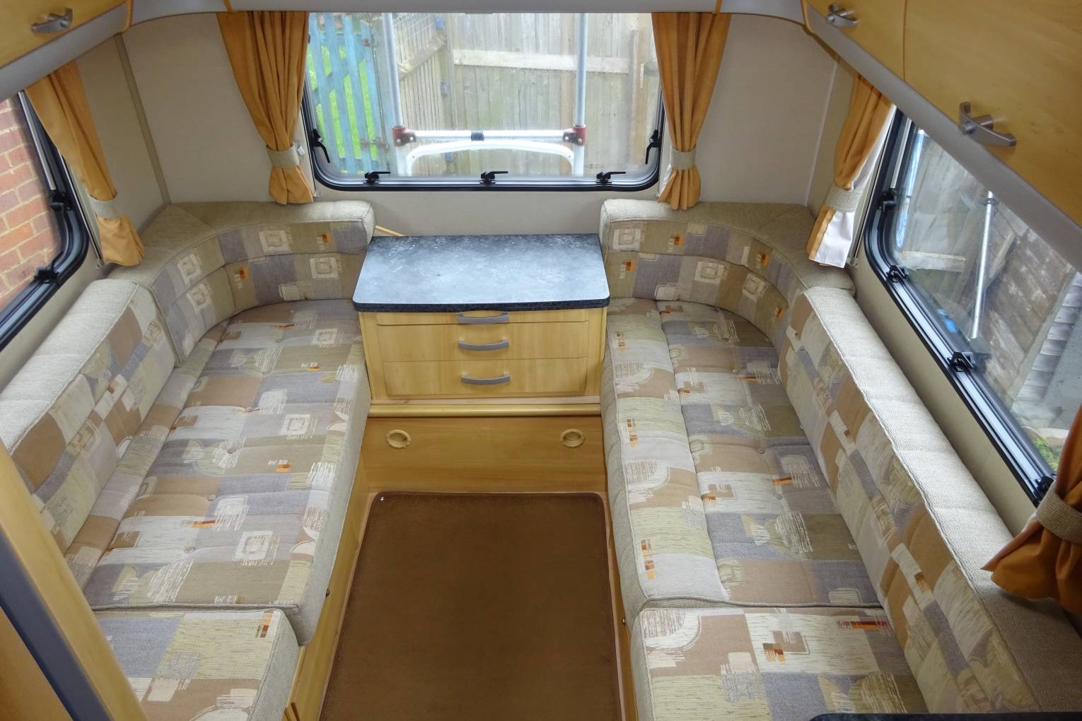 With six berths and belts this would suit the family needs. There is a large U shaped lounge at the rear which converts to a double bed. There is ample storage above and plenty of 12v low voltage lighting.
