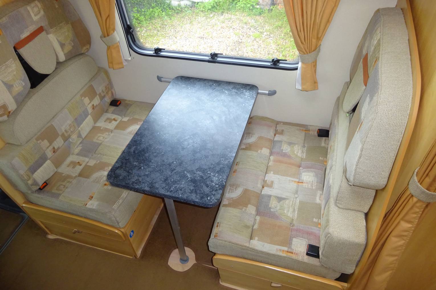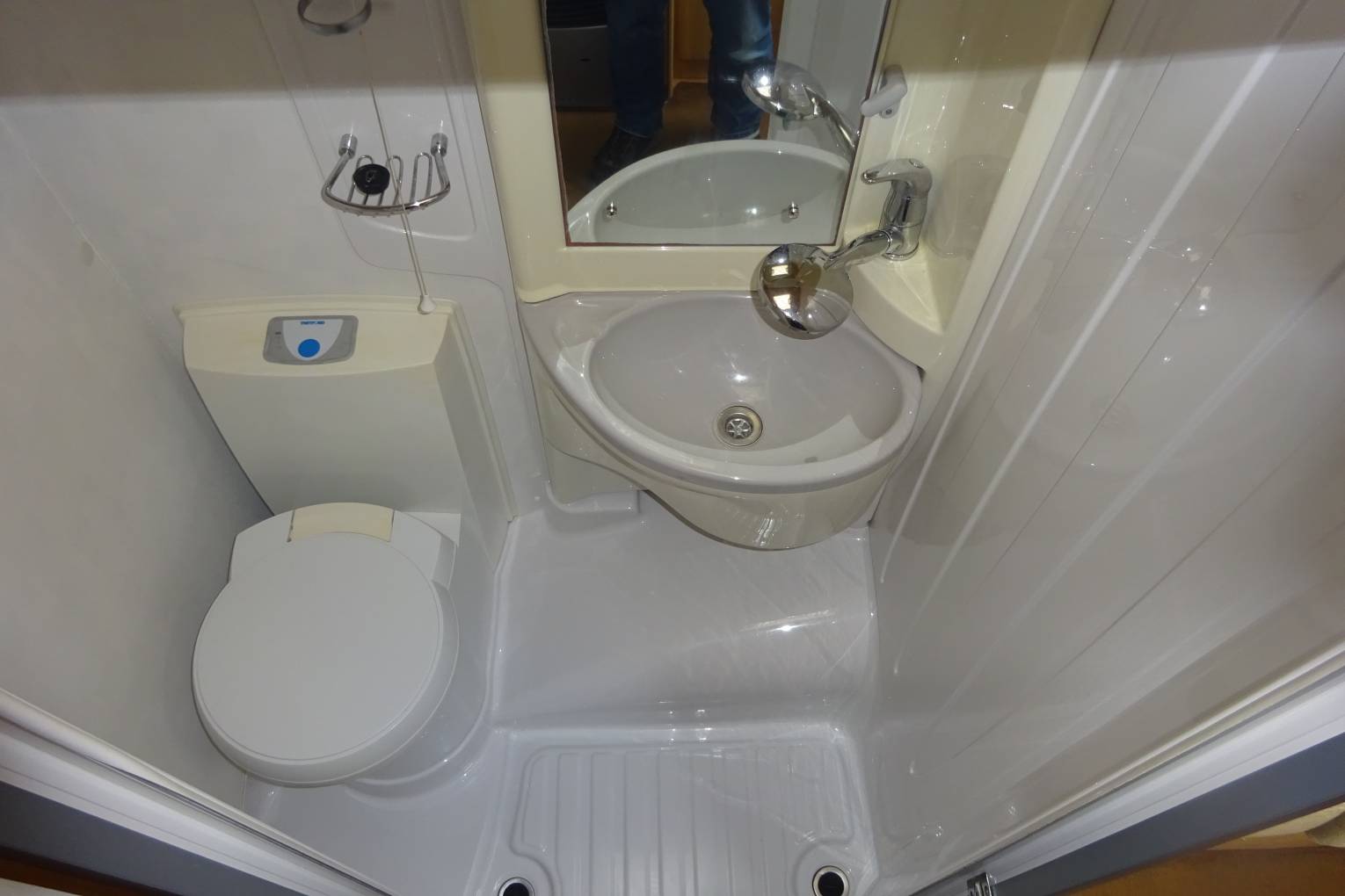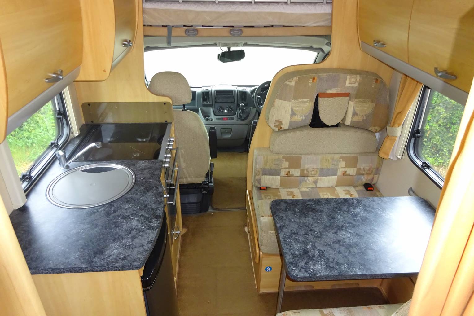 The kitchen is well equipped with oven, hob and grill. There is a good amount of preparation space including, sink and drainer. Also there is a large fridge/freezer which will run on gas, 12v or 240v when connected to a supply.
