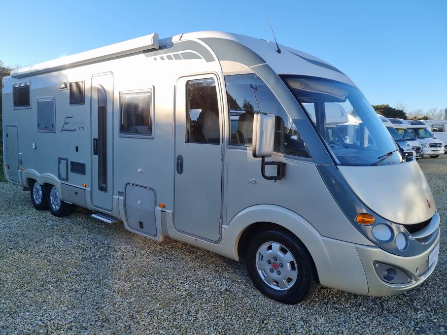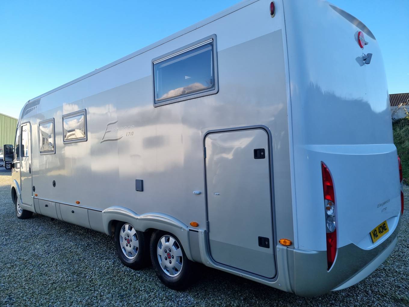 2008 Burstner Elegance I710 A class motorhome for sale. UK registered. This luxury A class features a rear bedroom area with twin single beds and an ensuite washroom with separate shower cubicle. A double drop down bed is also featured over the cab area. The front lounge area has twin swivel chairs, 4 travel seats and an extendable table. A mid ship kitchen is well equipped with hob, oven, grill and fridge freezer. Based on a Fiat Ducato 5000kg chassis (C1 license req) and powered by the reliable 3000cc engine and manual gearbox. This model has huge storage capacity with plenty of internal cupboards and a huge rear garage area. Internally in good condition with some cosmetic repairs required externally. Sale will include gas certificate, mechanical inspection and full Mot. Please call for further details.