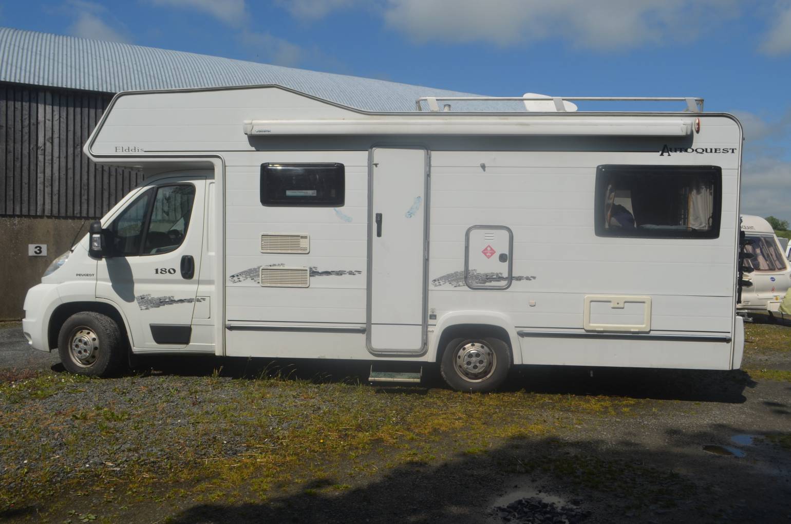 2008 ELDDIS AUTOQUEST 180 FOR SALE. Based on a Peugeot boxer 350 MWB 2.2Td engine and 5 speed manual transmission. Weight 3500kg, length 7.16 metres and width 2.2 metres. Mileage 65,192. Great family tourer with 6 sleeping places and 6 travelling seat belts. The rear of the vehicle has a classic U-shaped lounge that will convert into a double bed. Bathroom has a shower, wash hand basin and a cassette toilet. Centrally located kitchen is fully equipped with an oven, grill, 3 burner gas hob, sink and a 3 way fridge freezer. The dinning area can also be converted to a double bed and you also have a large double above the cab. Cab area has electric windows, central locking, power steering and a radio. Additional items fitted to the motorhome include a Fiamma awning, bicycle rack and a TV. The motorhome has some cosmetic issues and the rear bumper needs a repair.