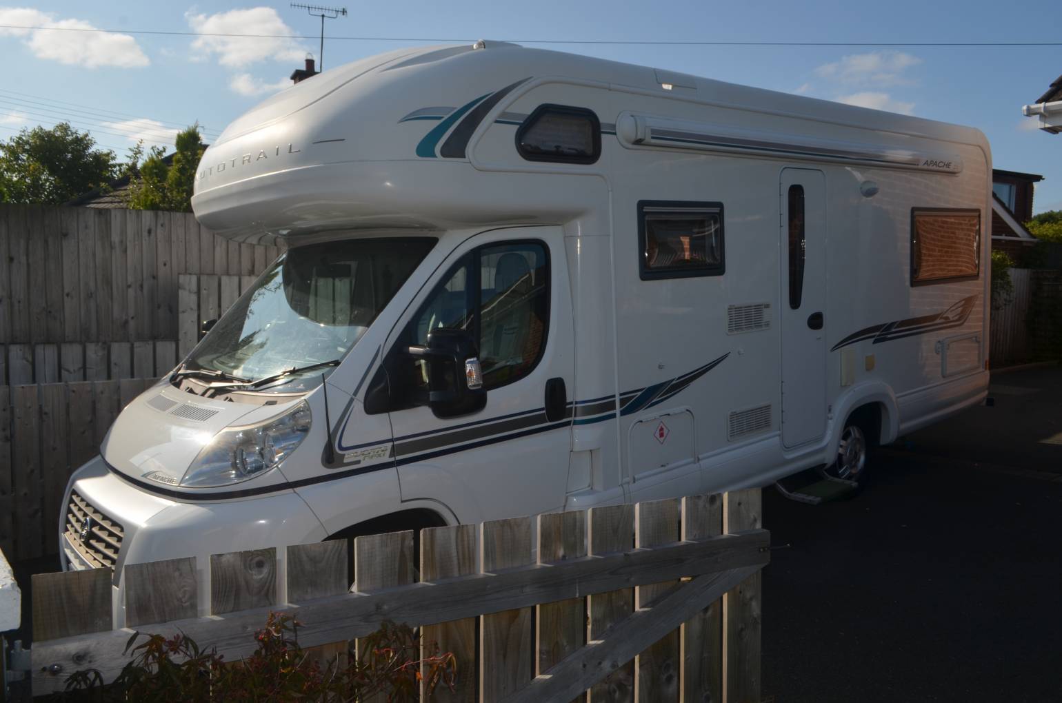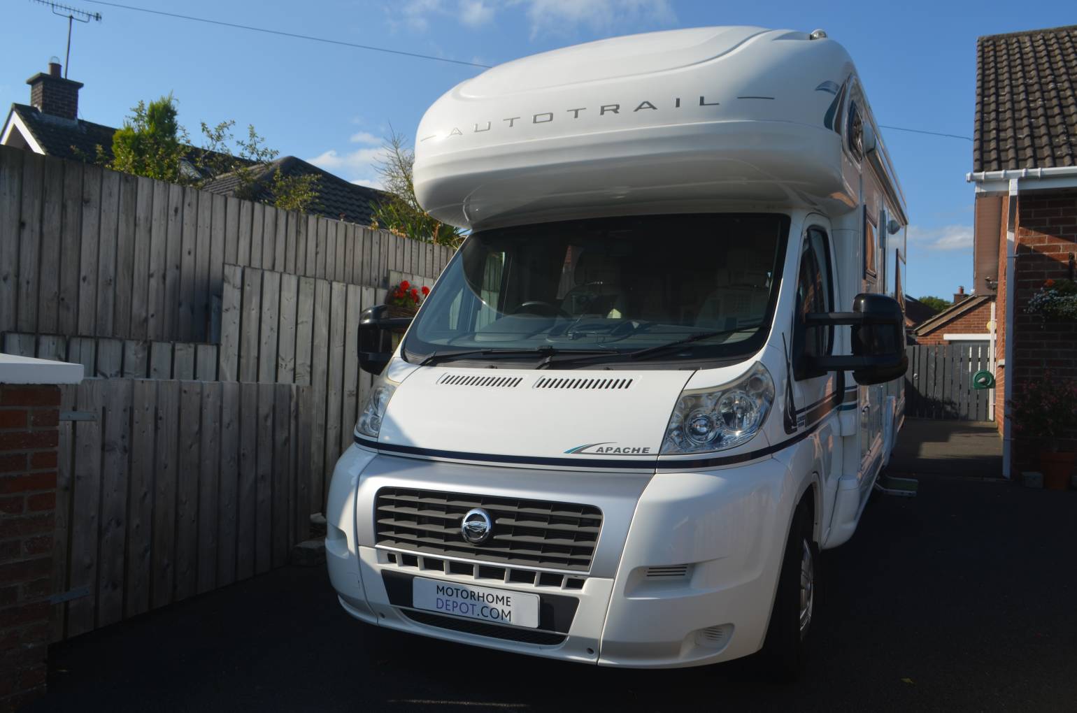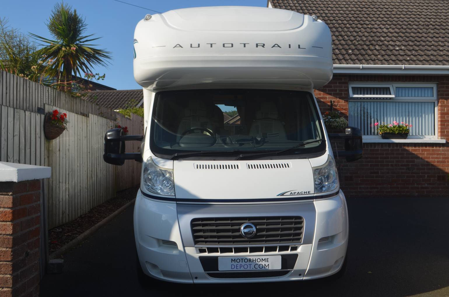 2009 AUTOTRAIL APACHE 700 SE FOR SALE. This luxury motorhome is presented in excellent condition throughout. Based on a Fiat Ducato chassis with a 2.3 td engine and 6 speed manual transmission. Mileage 32,200. MOT April 2020. Weight is 4005kg, length approximately 7.54 metres and width 2.35 metres. Cab area has central locking, cruise control, blinds on the windows, radio, cab air con and a reverse camera. This family layout will sleep 6 people with 4 travelling seat belts. Large double bed above the cab. Centre dinette will convert into a double and your U shaped lounge at the rear will also convert into a large comfortable double bed. Kitchen area has a microwave, full sized cooker, sink and a 3 way fridge freezer. Bathroom is a good size with a separate shower, cassette toilet and wash hand basin. Storage lockers and wardrobe situated in the habitation area. There is a door between the U shaped lounge and the front of the motorhome that closes to give some privacy. Extras fitted include a wind out awning, outside shower point, bbq point, bike rack, satellite, bike rack, tow bar and the gas bottles run on LPG.
