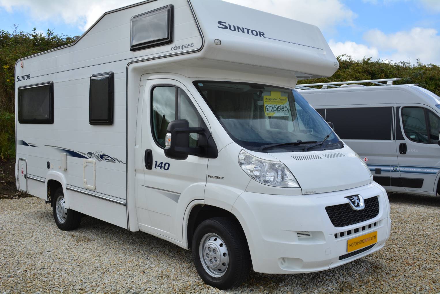 2009 Compass Suntor 140 compact Motorhome for sale. Presented in nice condition with a great use of space within a 6300mm length and based on a Peugeot Boxer 3300kg chassis. A rear lounge area provides comfort and space by day and makes way for a large double bed or two singles by night. Kitchen facilities are well catered for with a full cooker, 3 way fridge,storage cupboards and on board hot water. This layout provides for a washroom area with toilet, basin and shower. An over cab bed area sleeps two persons. Other features include awning, bike rack, aerial and reverse camera. Sale will include full mechanical health check, habitation inspection, gas certification, valet and one years warranty. FINANCE AND PART EXCHANGE AVAILABLE. PLEASE CALL FOR VIEWING DETAILS.
