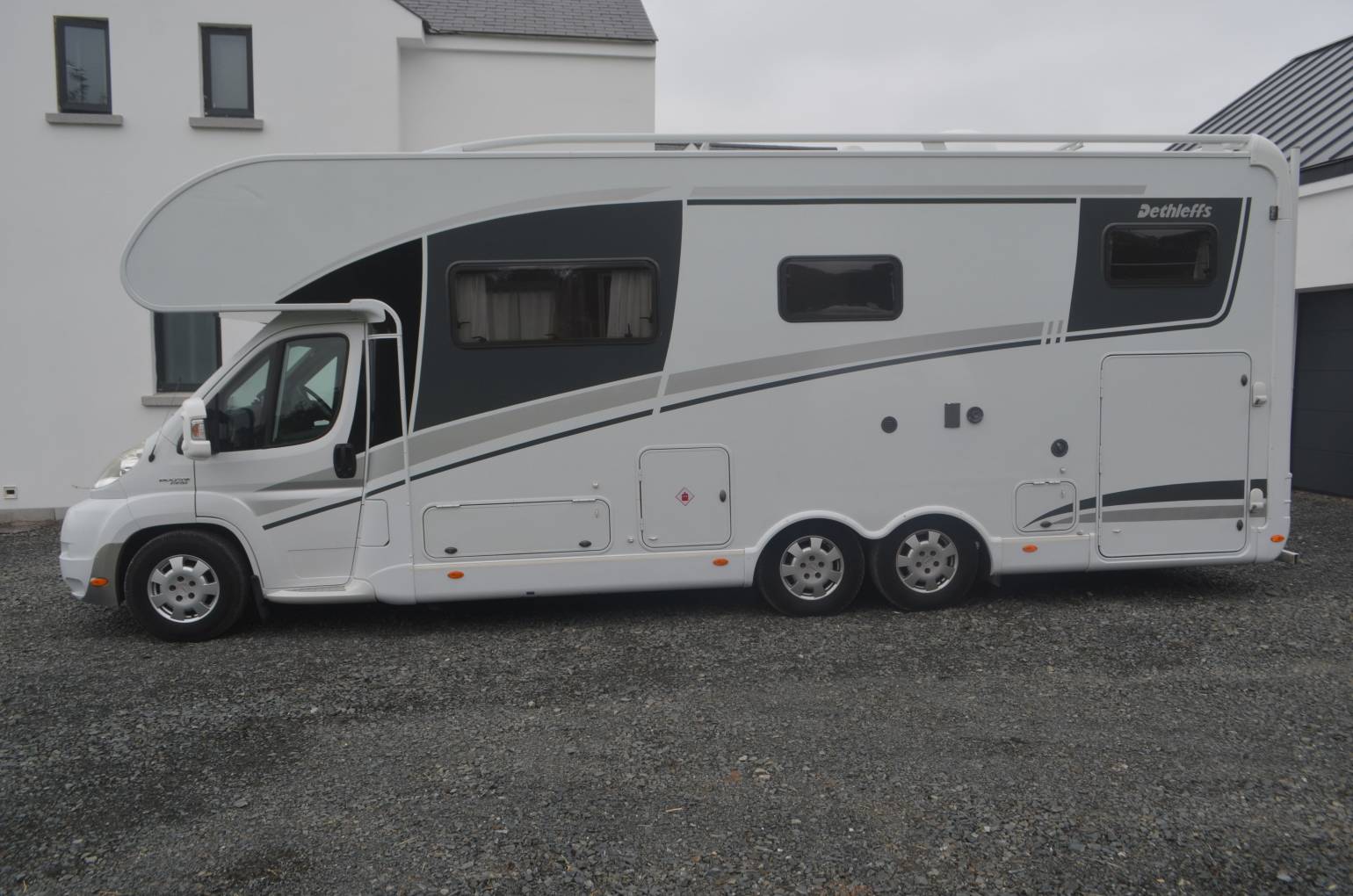 2009 DETHLEFFS ADVANTAGE 7871 TAG AXLE COACHBUILT MOTORHOME FOR SALE. 26,891 miles travelled. Spacious 6 berth with 6 travelling seat belts, fully winterised for travelling through the summer and winter. This German built motorhome is based on a Fiat ducato chassis with a powerful 3.0 L engine and 6 speed manual transmission. C1 needed to drive the motorhome. Weight 5000kg, length approximately 8.63 metres and width 2.33 metres. The Dethleffs Advantage has great features included in the layout. At the rear you have a transverse bed above a large garage. The garage is accessible from both sides of the motorhome. Sliding partition door to the rear of the bedroom gives extra privacy. Washroom has a separate shower, cassette toilet, wash hand basin and vanity units. The kitchen is fully equipped with a 3 burner hob, oven, grill, sink and has glass hinged covers. Fridge is 3 way and has a separate freezer compartment. Lounge/dinning area will also make up into a L shaped lounge and converts into another double bed. Above the cab you have a double bed that can be pushed up while travelling. Excellent storage throughout the habitation area. Air ventilation has been fitted to the roof in the rear and the bed above the cab.