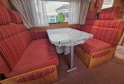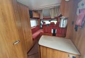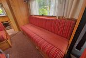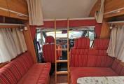 The standout features of this motorhome are the 6 belted seats, long sofa and overcab on a relatively small footprint and the interior is in good condition. The kitchen at the rear has a 3-gas burner hob plus sink and fridge. The washroom is generous in size and includes a toilet, sink and a full shower enclosure. The dinette comfortably seats 4 people with all seats being belted. The long sofa opposite can also serve as another bed plus an area to stretch out and relax. The overcab bed is very generous and would easily allow 3 younger children to sleep together. The windows are large and allow plenty of natural light to enter, and the light wood veneer and upholstery reflect this feeling too. Upfront in the cab it has air conditioning, manual transmission and the overcab bed lifts on pneumatic supports to provide extra headroom when driving.