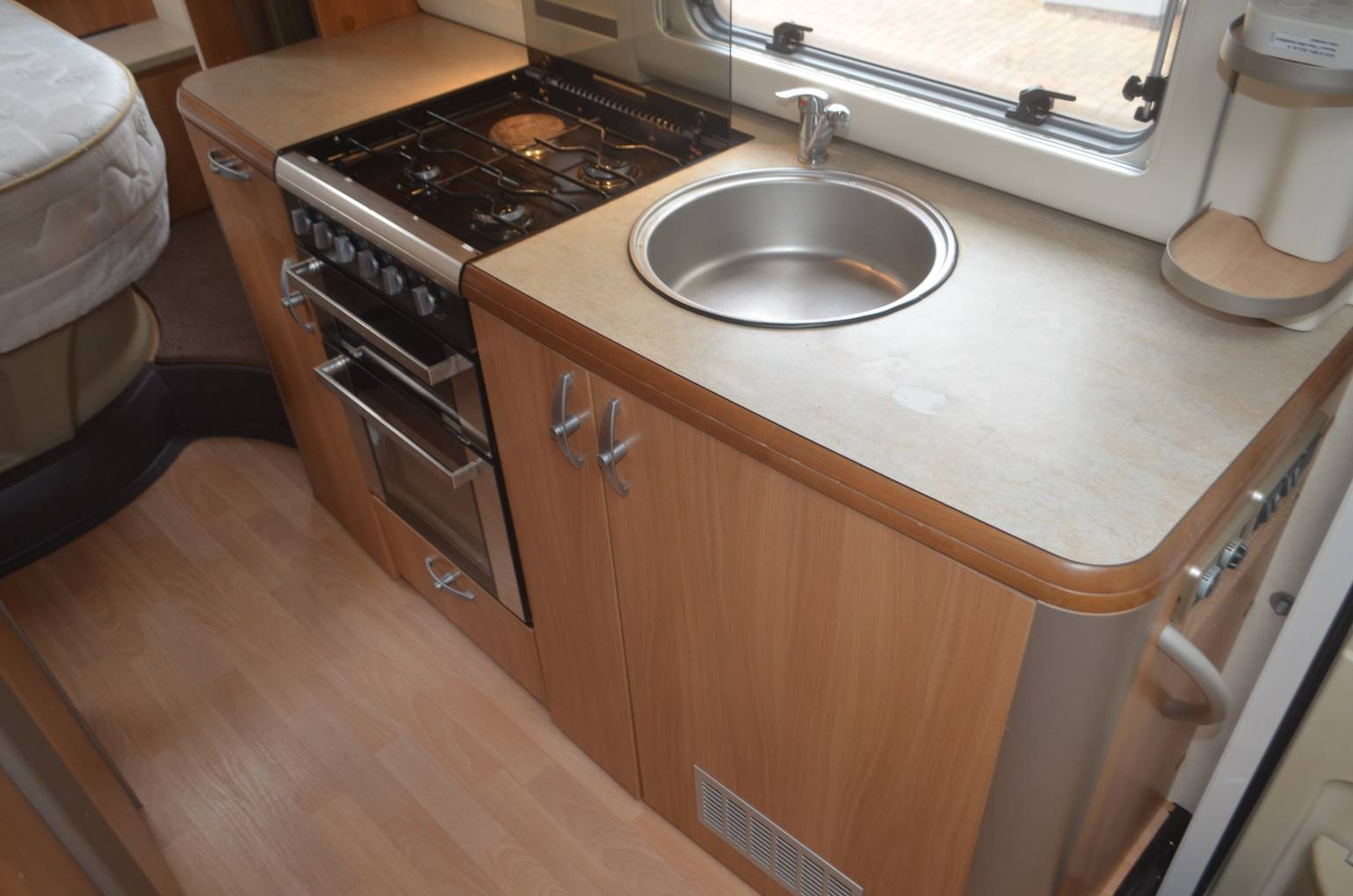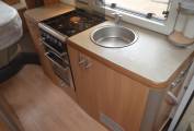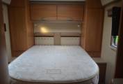 The bedroom at the rear has a large island bed that lifts up to reveal storage space underneath and has twin wardrobes with built in lockers for you personal belongings.