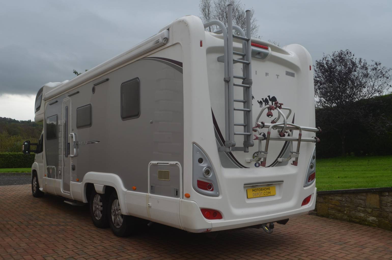 Additional items fitted to the motorhome include 2 leisure batteries, alloy wheels, an inverter, tow bar, cycle rack, Fiamma awning, solar panel, 2 gas bottles and a Tv in the bedroom.