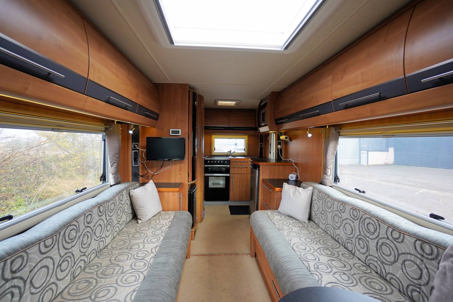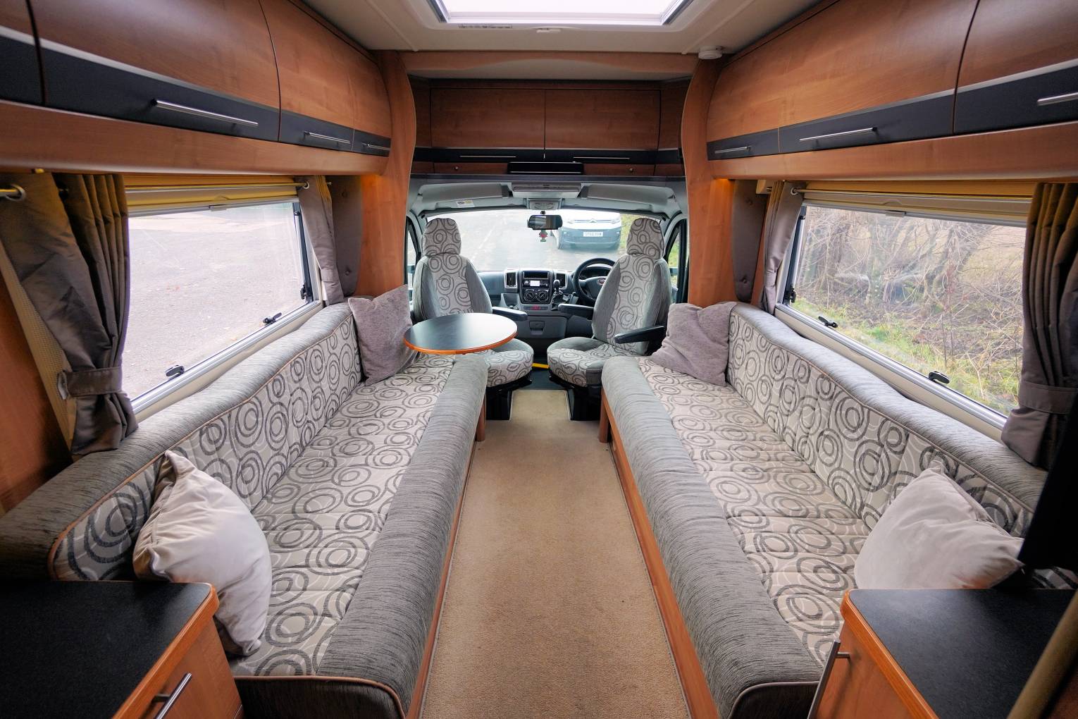 Based on a Fiat Ducato 2.3 litre (130hp) multijet engine with 5-speed gearbox, air-conditioning, reversing camera, radio/DVD player, cruise-control, electric mirrors / windows and 15” alloy wheels.