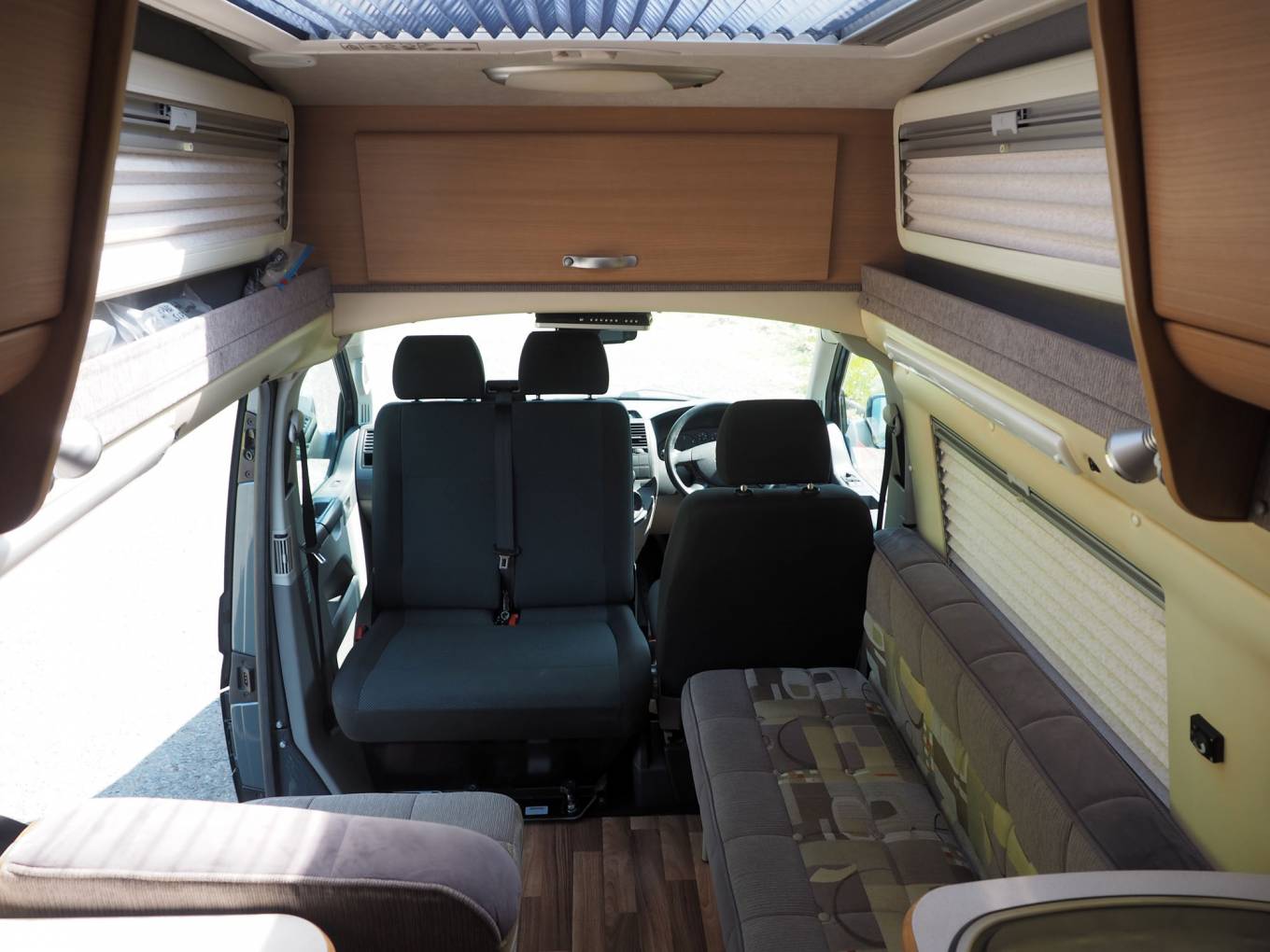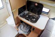 The kitchen is spread centrally with one side housing a large sink/drainer with 3 way fridge underneath, opposite the twin burner hob and integrated grill/mini oven. Storage is cleverly designed with lots of cupboards and cubbyholes. Fitted with nightblinds to all habitaion windows and ample lighting to suit. The bed is easy to make up and put away in a matter of moments, whilst not huge, plenty big enough for two average sized people. Factory fitted equipment listed includes dual fuel Truma ultrastore hot water heater, Eberspacher diesel blown air heating, Heki roof light, and both fresh & waste underbody water storage tanks.