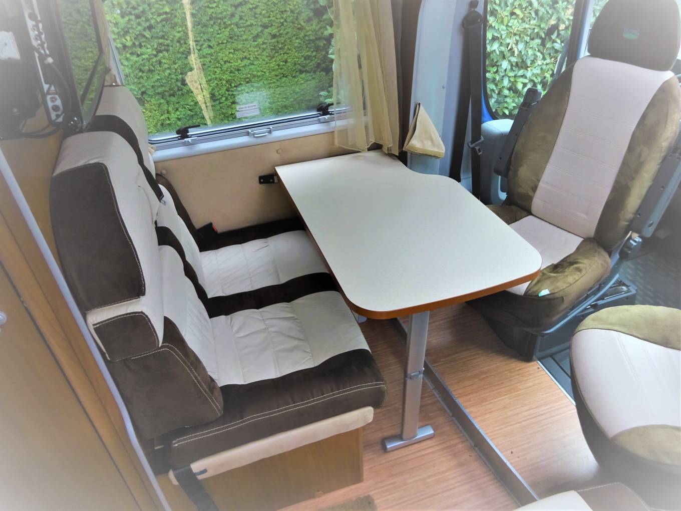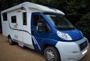 This is a 4 berth and 4 travelling seat vehicle is ideal for those European travels with it’s left hand drive and European specification, although equally at home on our UK roads with the headlights being adjust to UK. The large rear bedroom has twin single beds but also comes with infill cushions to convert easily to a very large double fixed bed. The well fitted washroom, has cassette toilet, sink and separate shower cubicle, with plenty of lighting and storage.