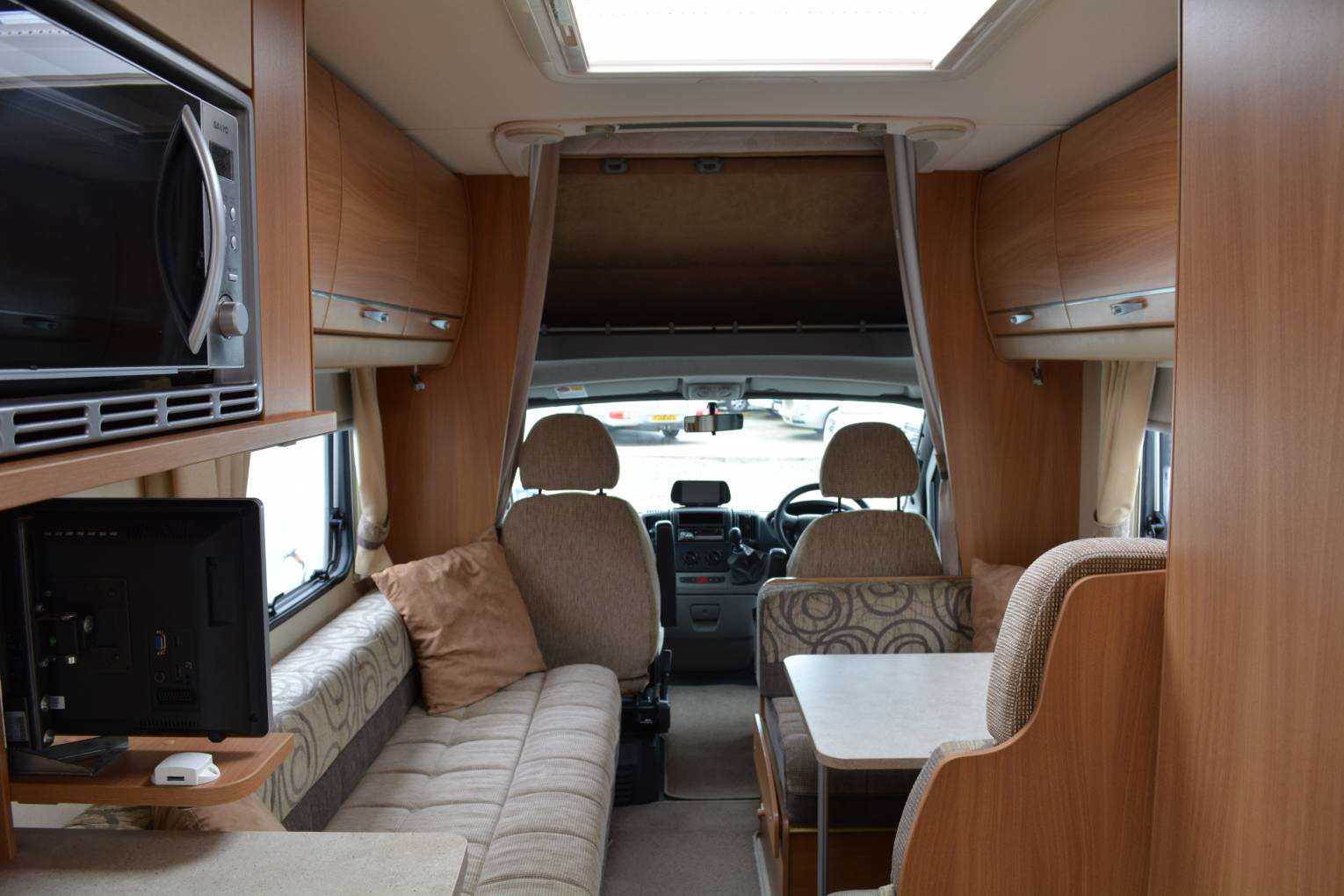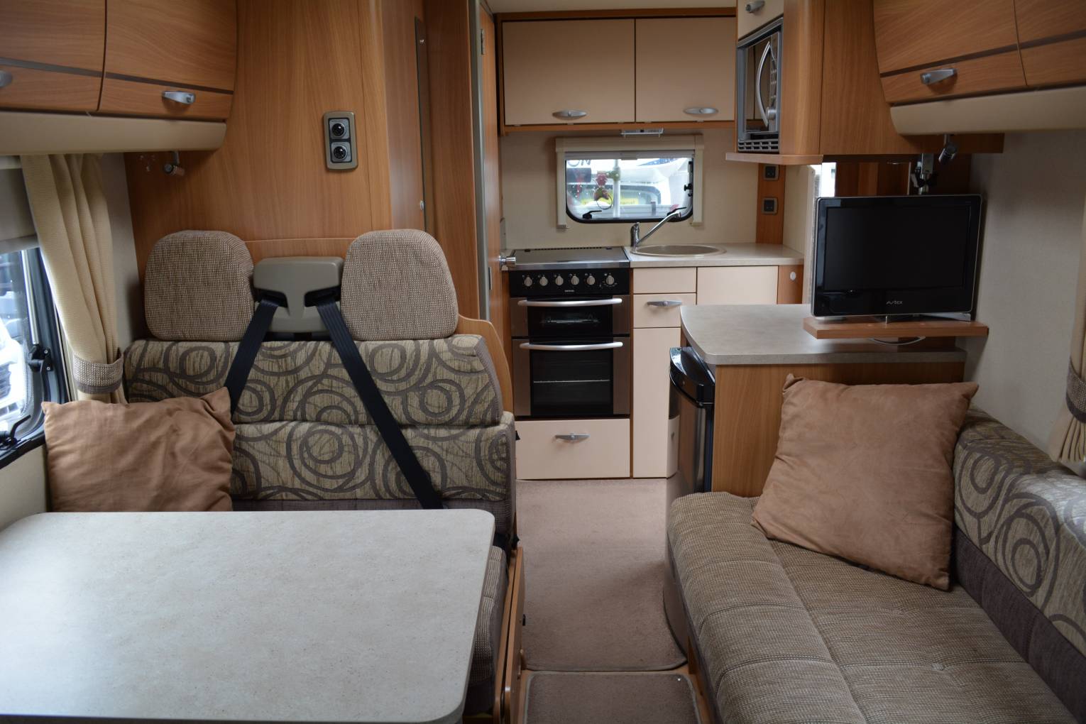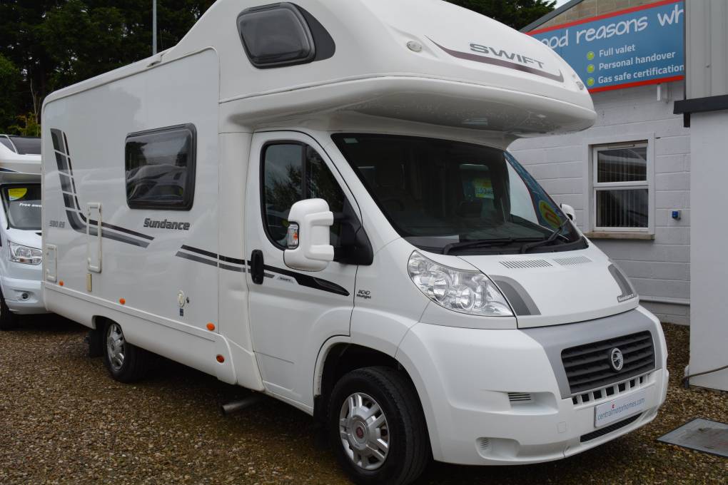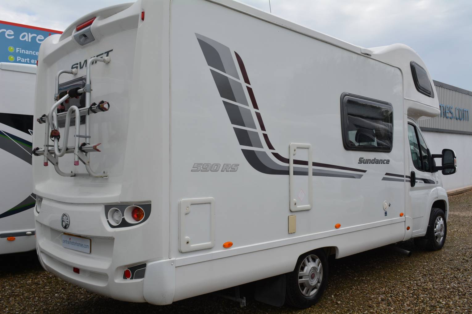 2010 SWIFT 590 RS 4 berth Motorhome for sale. Presented in nice condition and offers a great opportunity to enjoy the world of Motorhomes. Based on a compact Fiat Ducato chassis with a max weight of 3500kg and an overall length of approx 6.7 metres, yet this RS model is surprisingly spacious inside. Specification includes end kitchen with full cooker, microwave and fridge, compact washroom, spacious lounge area with 2 additional travel seats and a large over cab bed. Other features include awning, bike rack, reverse camera, TV and cab shades. Sale will include full mechanical service, 1 YEARS MOT, habitation service, gas certificate and one years warranty. FINANCE AND PART EXCHANGE AVAILABLE. PLEASE CALL FOR FURTHER DETAILS.