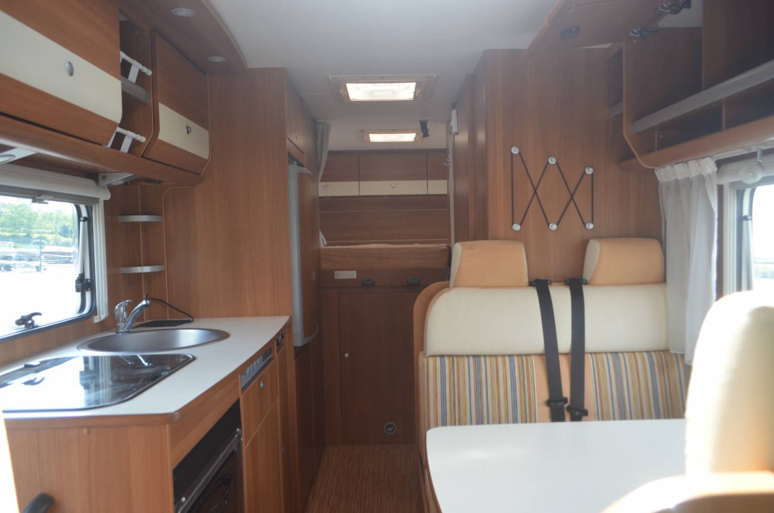 2011 CORADO A464 FOR SALE. Presented in great condition throughout. Excellent family layout. Based on a Fiat ducato chassis with a 2.3 engine, 6 speed manual gearbox and 6 travelling seatbelts. MOT until May 2019. Maximum weight is 3495kg measuring 7.28m in length and 2.33m in width. Mileage at present is 22,261. This model will accommodate up to 6 people comfortably. The cab area has a swivelling captains seat with height adjustment, radio, central locking, electric mirrors, cab air con and a reversing camera.The A464 offers 2 massive double beds either end of the vehicle and a dinette that converts into an additional double bed with a TV/DVD player mounted to the wall. Facing the dining area you have a fully fitted kitchen with a 3 gas burner, oven, sink and 3 way fridge freezer .Plenty of overhead lockers and cupboards for storing all your essentials. Your washroom is a good size with a shower cubicle, toilet and wash hand basin along with more storage cupboards. Outside you have a wind out awning with a large garage that can be opened from both sides and would easily carry a motorbike. The Glomex satellite dome has been updated and 2 new tyres fitted to the rear.