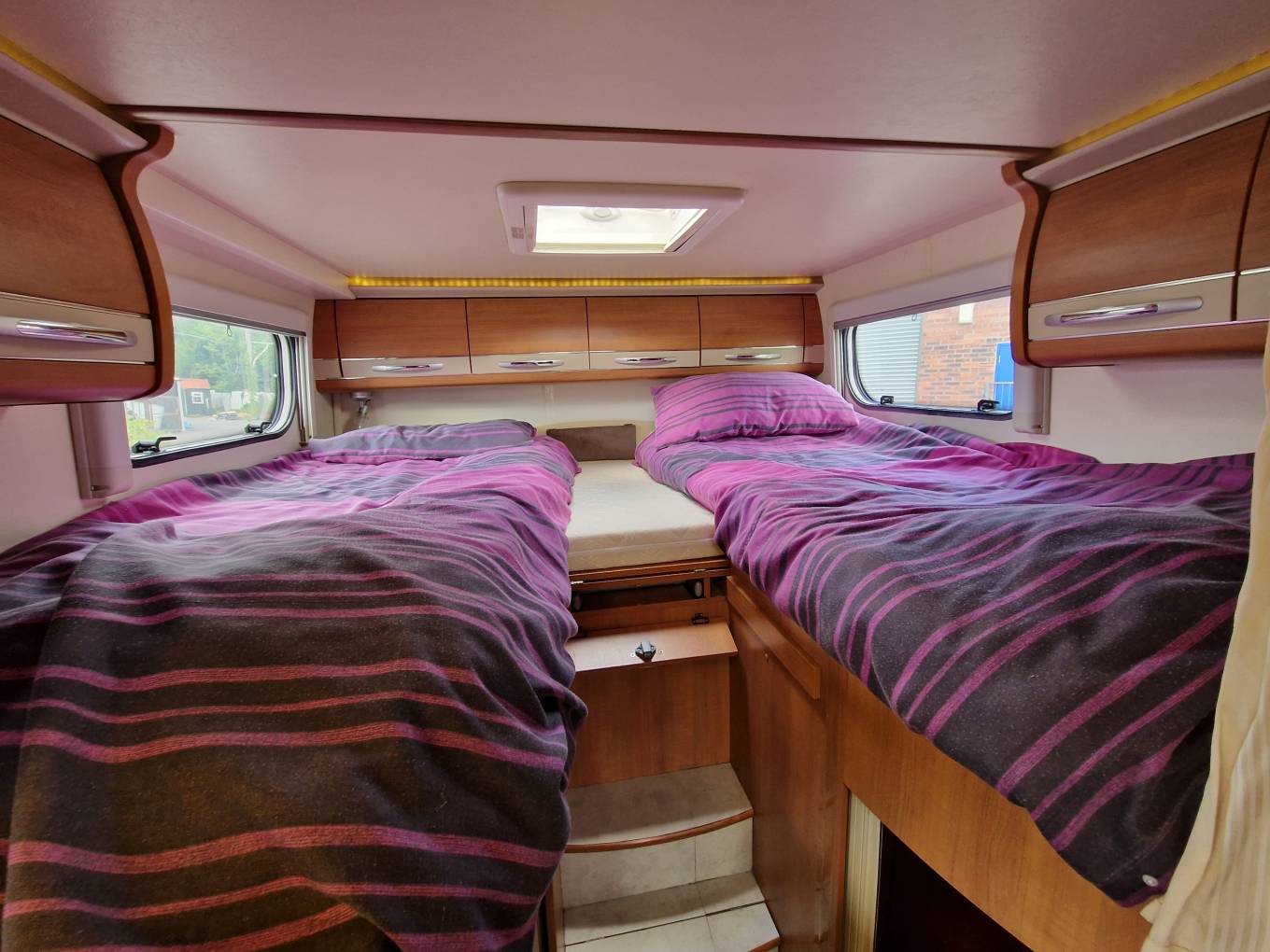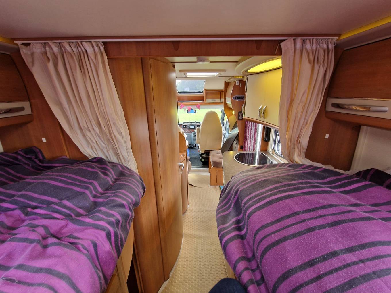 Some stand out features are the rear sports garage that is excellent for those wanting to take larger items on their adventures and also has plenty of other internal storage within the MH, below the rear fixed beds and also in the cabinets around the MH.