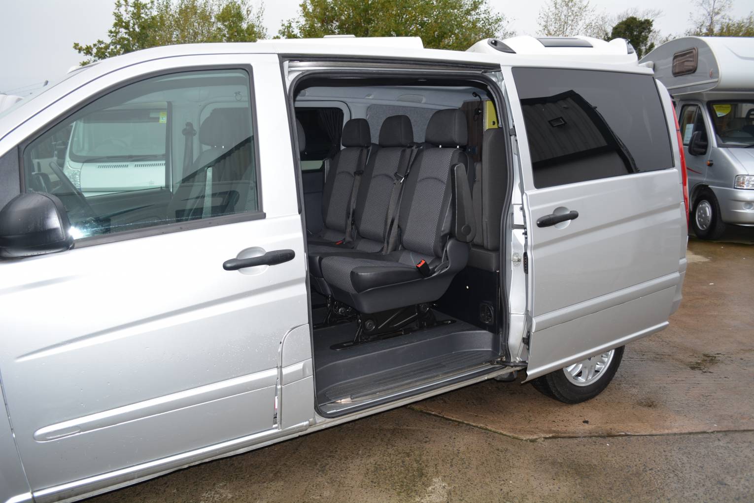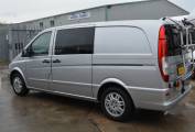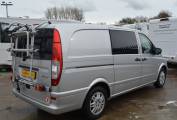 2011 Mercedes Vito 113 CDI For Sale. Excellent condition throughout. Powered by a 2.2 Mercedes engine with manual transmission, good service history, MOTd until October 2019 and sale includes 6 months warranty. This Vito Campervan was converted to a high standard in 2016 and is registered as a Motorcaravan. It can also be used as a day van with five forward travelling seats which can be removed when camping. Twin sliding habitation doors open onto the lounge/dining area with one swivel chair for extra seating. At the rear a bench seating area converts easily to make up a comfortable double bed for two people. Dimensions 1.8m x 1.1m.Kitchen area consists of a Smev designed double gas hob and sink with high grade materials for an expert finish and is ideal for making the most out of minimal space. Also included is an internal water tank with pump and a cool box that can be operated on mains or battery. Ample storage allows you to pack everything you need for travelling. A Thetford Porta Potty is also available. Other features include air conditioining, radio CD, cycle rack, 110amp leisure battery with automatic split charge, LED reading lights, 12 volt battery charger, 1 x Berker 12 volt socket for fridge 2 x 230 volt sockets with USB port, mains hook up and Propex gas space heater. For added privacy there are rear and side curtains along with Bespoke insulating side and windscreen covers.FINANCE PART EX AVAILABLE. PLEASE CALL TO ARRANGE VIEWING.