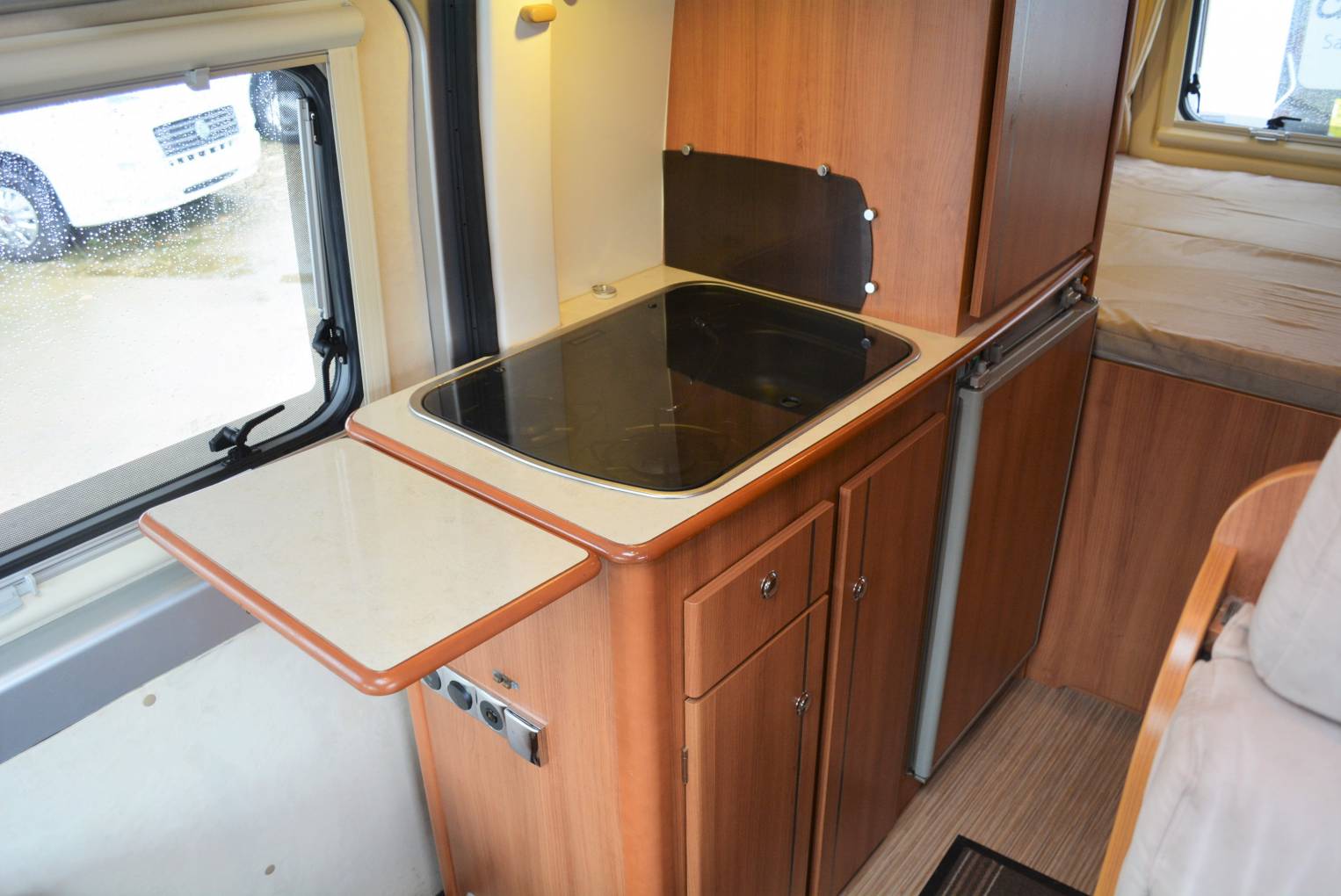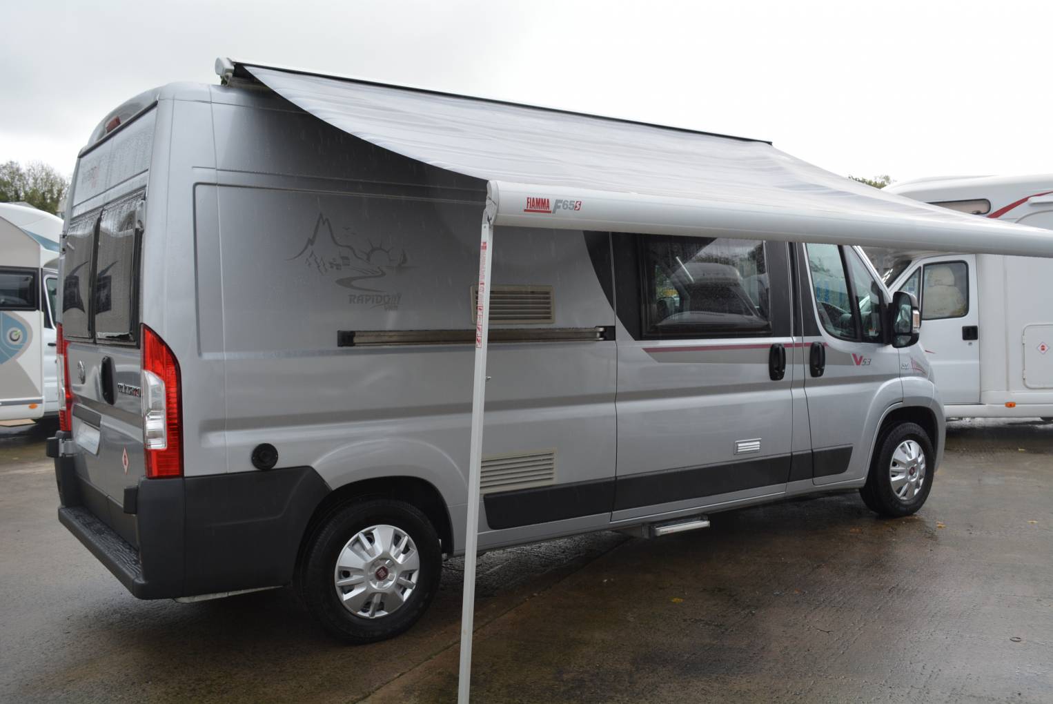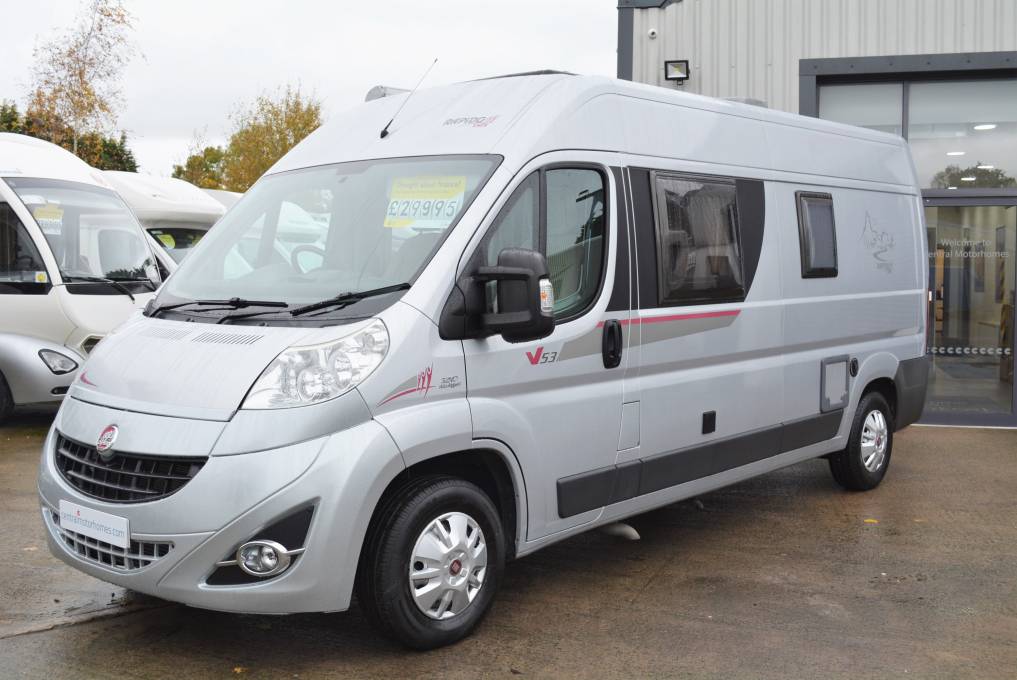 2011 Rapido V53 3 berth professional camper for sale. Based on the reliable Fiat Ducato 3300kg chassis, 2200cc 120hp diesel engine and six speed manual transmission with an overall length of 5999mm, 1880mm high and measures 2050mm wide. Features include rear transverse fixed bed with garage area beneath, gas tank storage cupboard, washroom with toilet, shower and wash basin, kitchen area with hob and 80 ltr fridge, front lounge area with twin swivel seats and travel belts for 4, on board hot water and space heater, on board fresh and waste water tanks, air conditioning, cruise control, Remis cab blinds, TV point, awning and immobilizer alarm. Sale includes full years MOT, engine service, habitation service, gas certificate and one years warranty. FINANCE AND PART EXCHANGE AVAILABLE. PLEASE CALL FOR FURTHER DETAILS