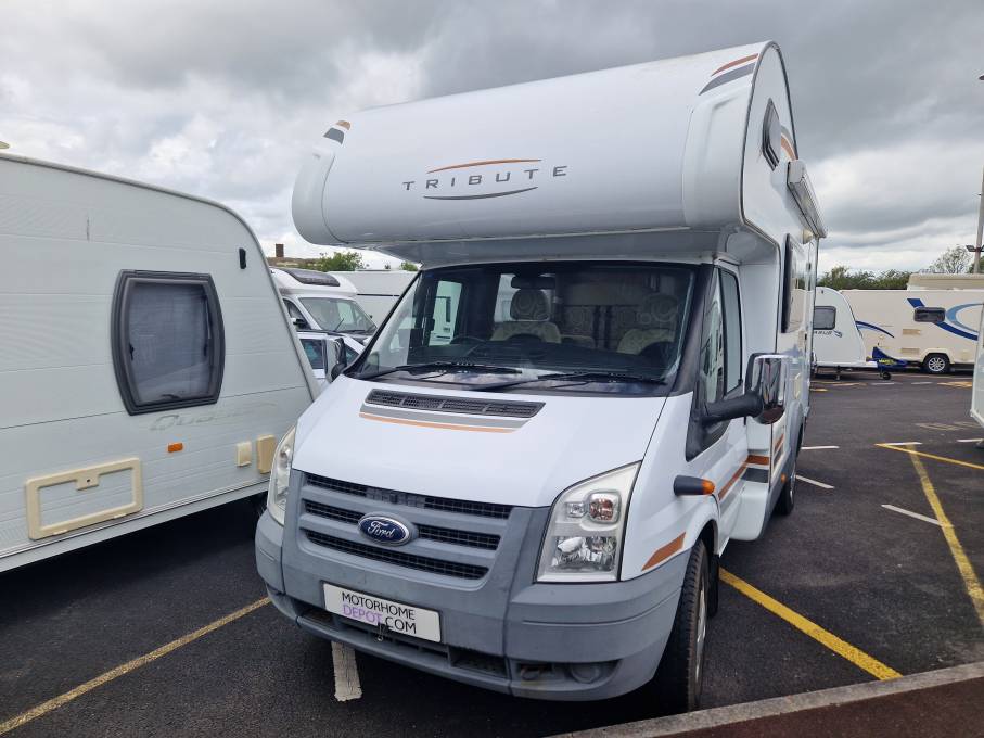 Motorhome Depot offer this Autotrail Tribute T620 5 berth,4 belts family motorhome. Based on the Ford Transit T350 with the ultra-reliable chain driven 2.2 TDCi engine with the 6 speed gearbox, this Motorhome drives very well having only done 21000 miles from new and has a recent MOT. It is only 6.3 metres long so it very easy to handle but is deceptively spacious inside.