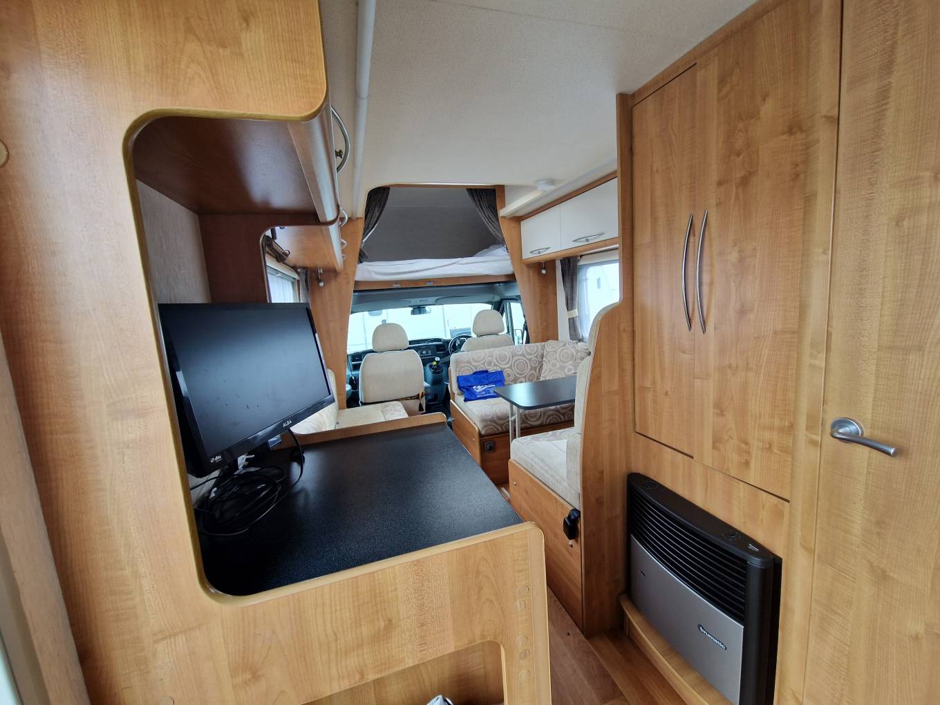 Internally, there is dual fuel heating and hot water, full electrics with charging system and TV.Up front we have cruise control, electric mirrors and windows.