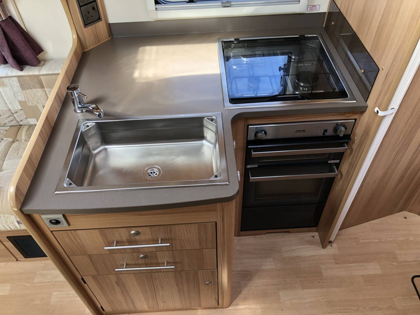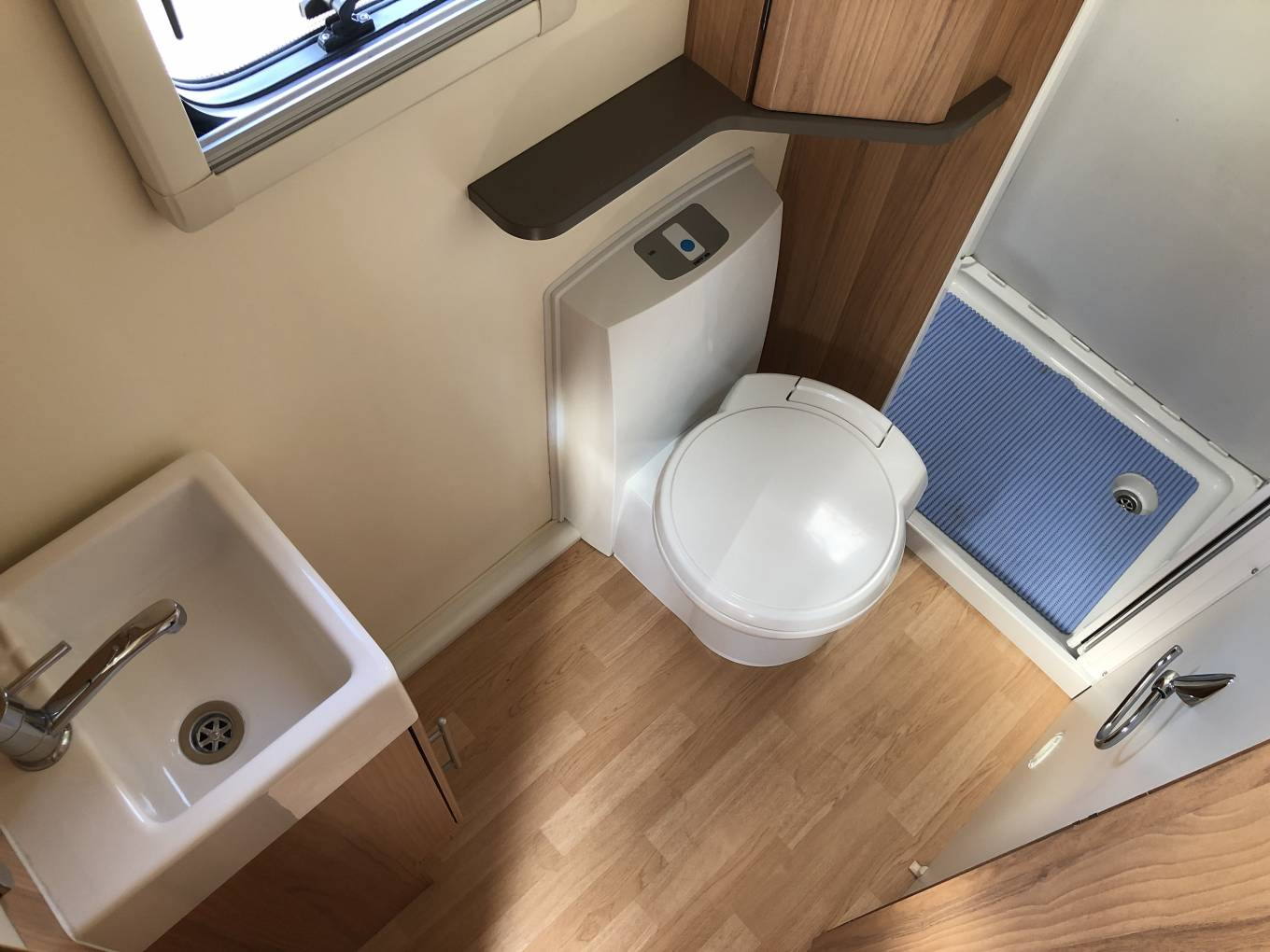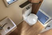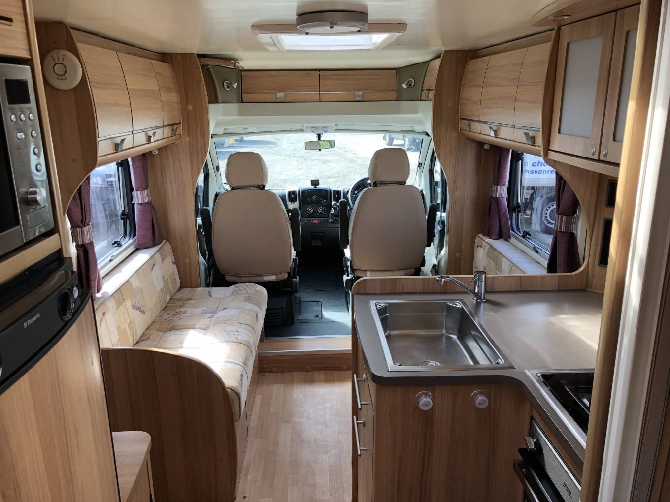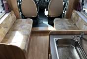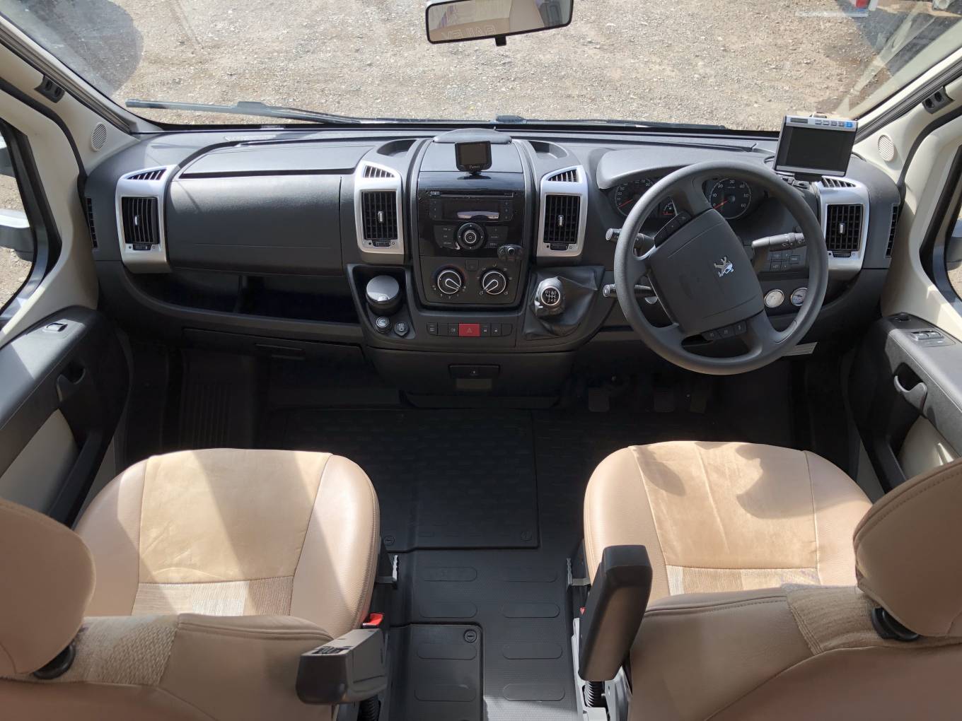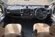 Firstly, we start at the spacious rear fixed double bed. Adjacent is a large washroom with separate shower cubicle, toilet and wash basin. Next, is the well equipped kitchen. The kitchen includes a 4 ring gas burner, large fridge freezer, microwave, oven, grill and wash basin. As we get to the front of the Motorhome we arrive at the dinette. The dinette is the perfect place to relax, seats 4 comfortably and converts to a double bed. Finally, is the cab which features 2 swivel seats, air con, bluetooth parrot and cruise control.