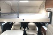 Central dinette with dropdown overcab bed and rear fixed twin beds (that have cushions to make up a king sized double bed).