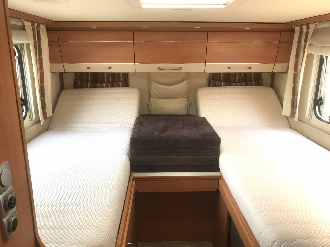 The rear bedroom has plenty of overhead storage and the beds also have lift-up backrests. There is wardrobe and storage cupboards under the bed too.