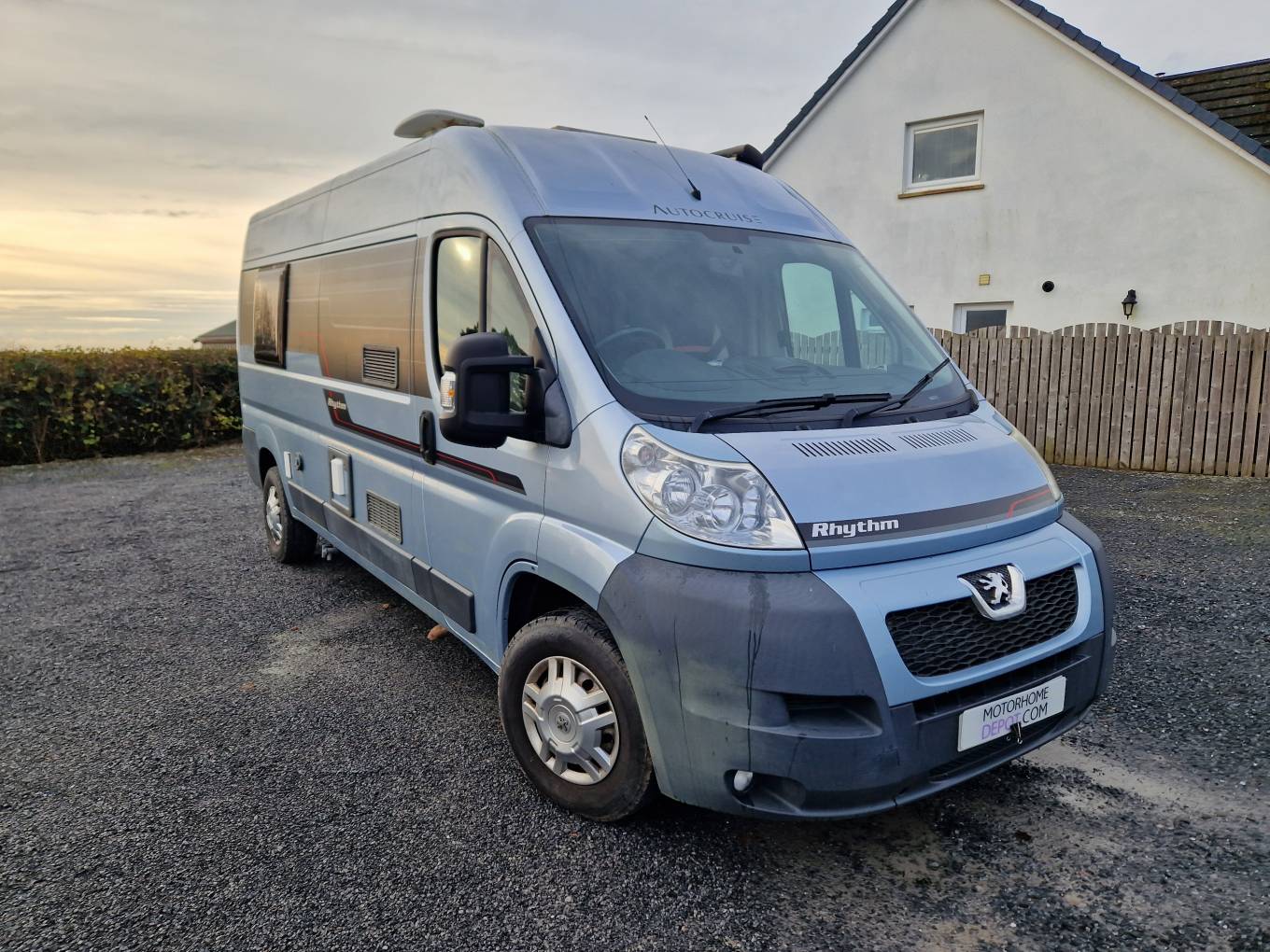 Motorhome Depot are pleased to present this excellent 2013 Autocruise Rhythm. It is a popular two berth, two belted Panelvan motorhome in metallic blue with the hugely popular rear lounge layout. It is based on the high-top Peugeot Boxer cab and chassis and is powered by the chain-driven Peugeot 2.2-litre diesel engine with the economical six speed manual gearbox. It has only 30470 miles on the clock and has an MOT until September 2024. It has a GVW of 3500kg so can be driven on a standard driving licence and is only 6.0m long so is very simple to handle. The height is 2.72m and the width is 2.05m.