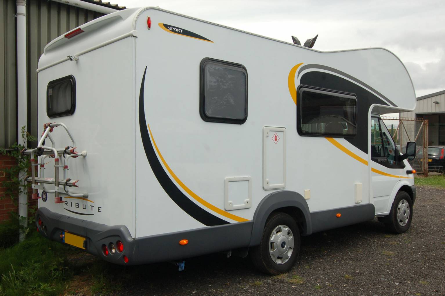 Specification is high, this motorhome has the Sport Pack which includes roll out sun canopy, colour reversing camera, TV aerial and front fog lamps. A bike rack is also fitted. Internally, there is dual fuel heating and hot water, full electrics with charging system. Up front the 125BHP front wheel drive Ford Transit drives beautifully, with 6 speed gearbox, cruise control, electric mirrors and windows.