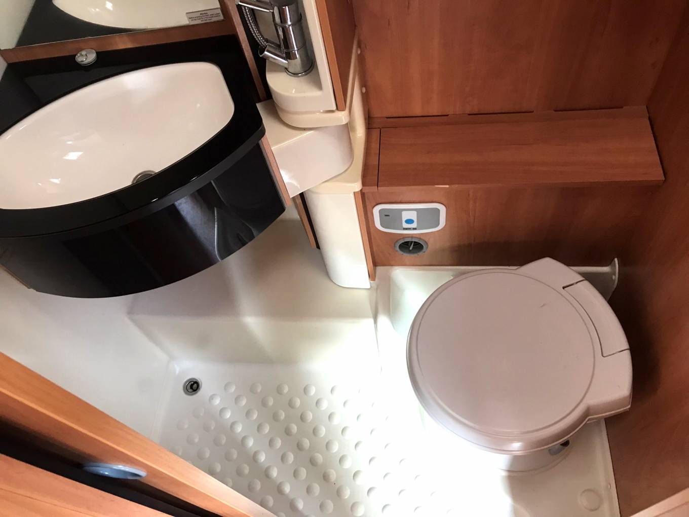 Immediately behind the dinette is the washroom, with a Shower, basin, and toilet and a very clever space-saving layout, allowing you to maximise on the space dependent on use.