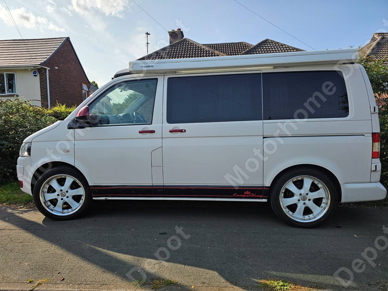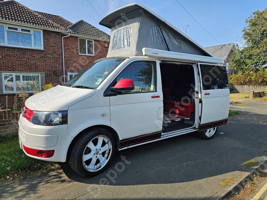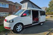A 2013 Volkswagen Transporter T6 with a top conversion by Camper King conversion. (see https://www.camperking.co.uk/ )