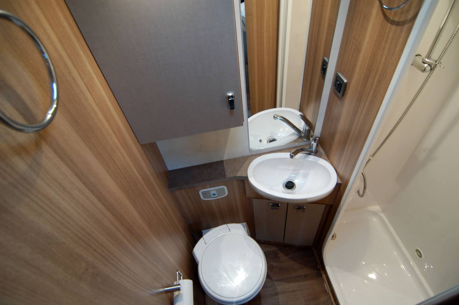 There is a high level of specification including onboard fresh and waste water tanks, dual fuel heating and hot water systems, dual fuel hob, gas oven and grill, microwave etc. The heated washroom has a well designed enclosable shower and a usable vanity sink, toilet, good storage and easy to clean surfaces.