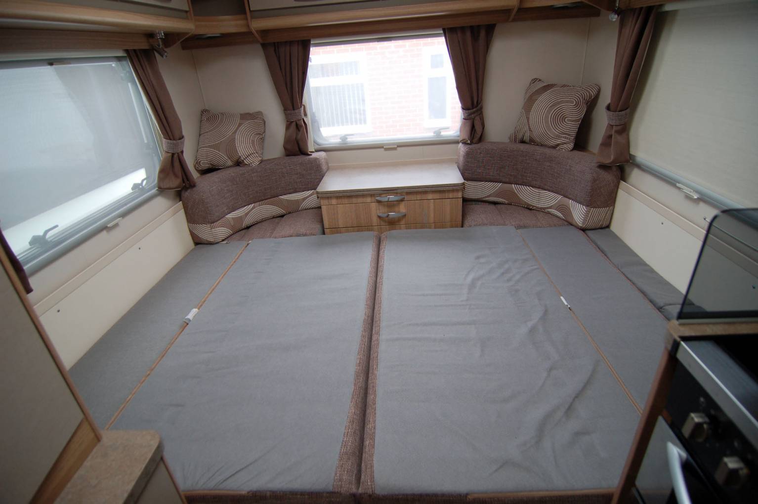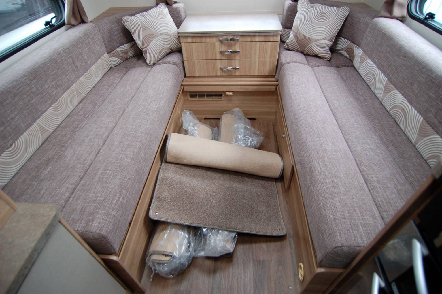 The rear lounge is especially versatile, having the optional rear combination drawer and table top chest in addition to standard wrap around U shape seating. The upholstery has always been covered, so is in excellent condition, as are the removable carpets which have never been put down.