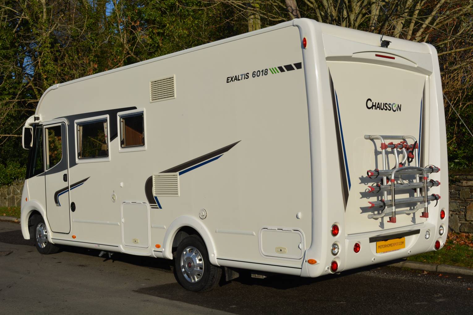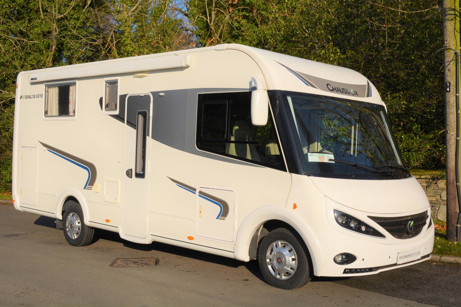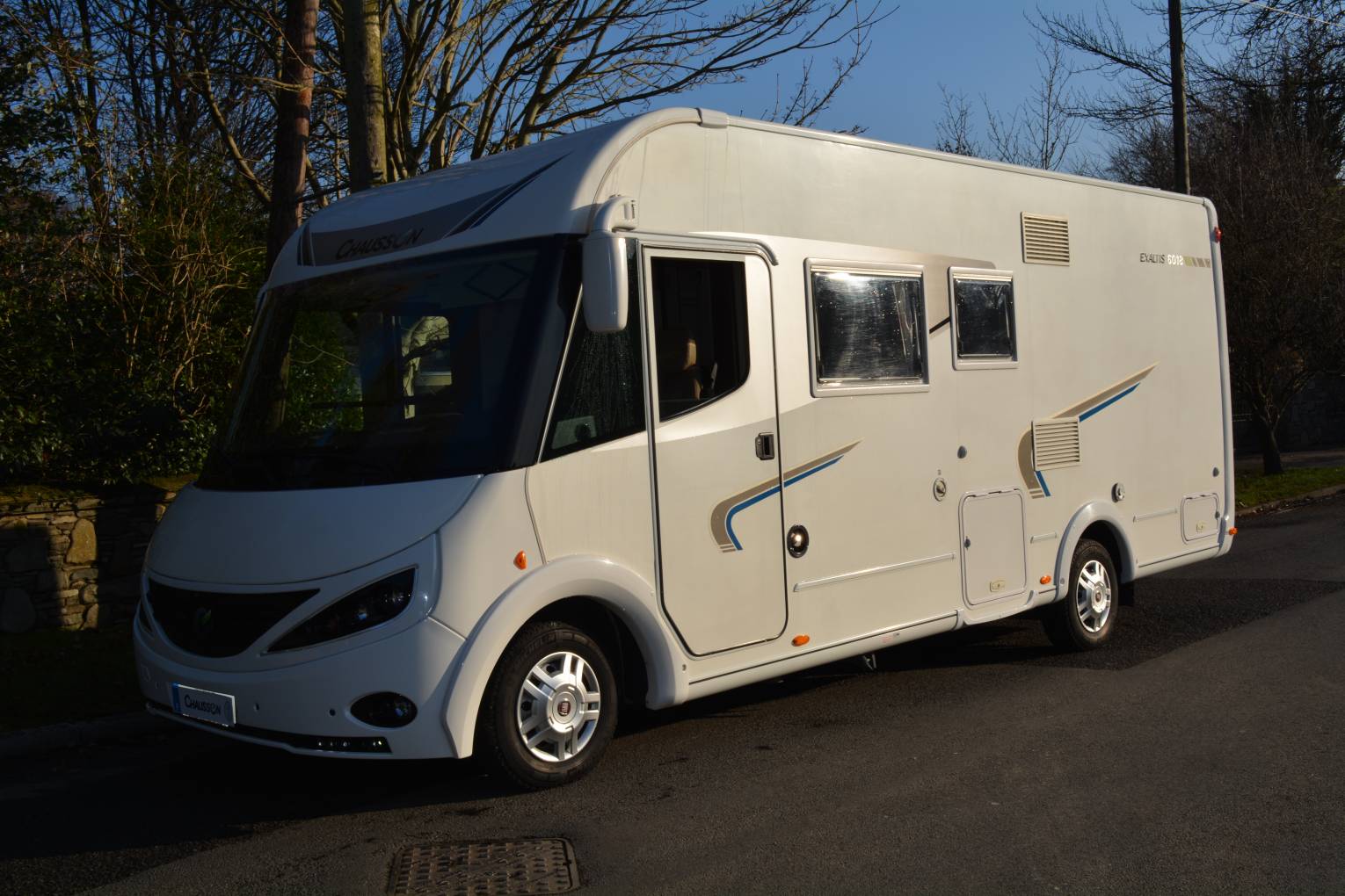 Beautiful 2014 Chausson Exaltis 6018 Luxury A Class LHD Motorhome for sale. If your looking for that special A Class Motorhome this model has much to offer with a spacious layout and measures only 6.99 metres in length with a maximum weight of 3500 kg. The interior layout consists of a rear island bed with separate shower and dedicated washroom. A well equipped kitchen offers a large 3 way fridge freezer making those longer trips much more efficient. The luxury lounge area has additional travel seats for two persons, twin swivel chairs and is complimented by LED lighting. A large drop down bed provides sleeping places for 2 persons. Other features include air conditioning, cruise control, awning, rear hold area, reverse camera, bike rack, parking aids and rear corner steadies. Servicing and one years warranty included in sale. Please note NO VRT payment is required on this vehicle. FINANCE AND PART EXCHANGE AVAILABLE. PLEASE CALL FOR FURTHER DETAILS.