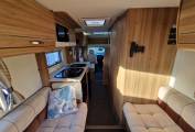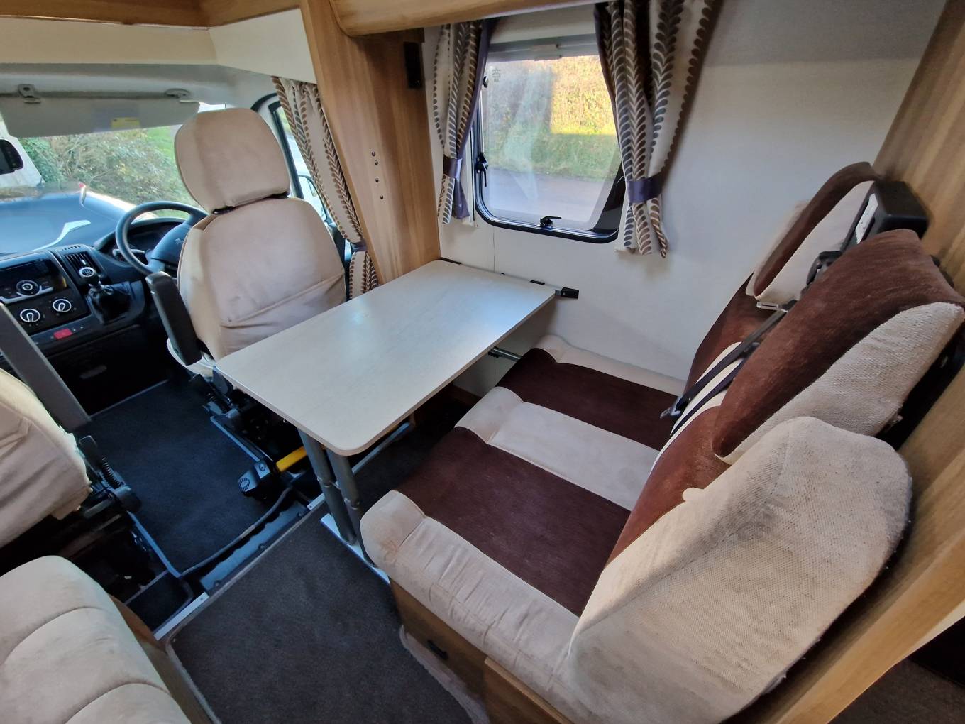 The Cab benefits from Cruise control, FM radio, Air conditioning and 2 swivelling seats and the habitation area has mood lighting thoughout along with cabinet lighting. Hot water and heating provided by a Whale boiler. The rear social area is very generous and is a real feature of this motorhome.