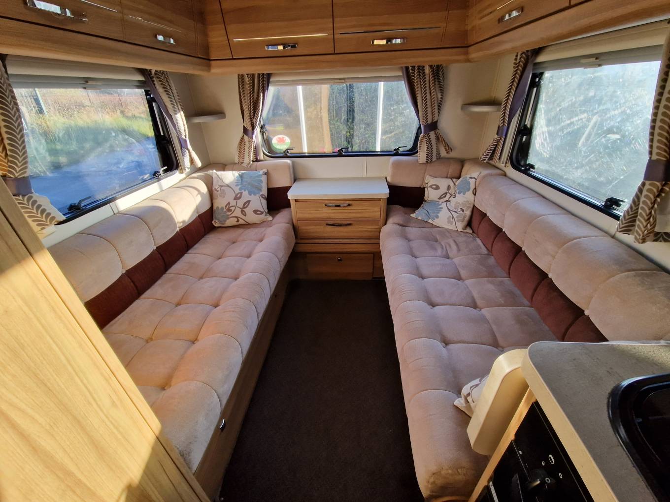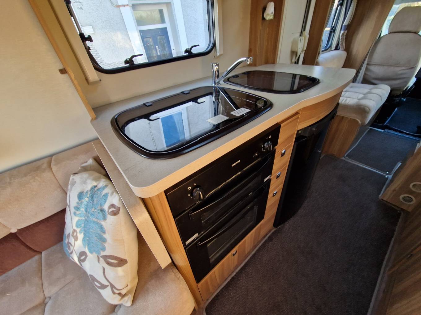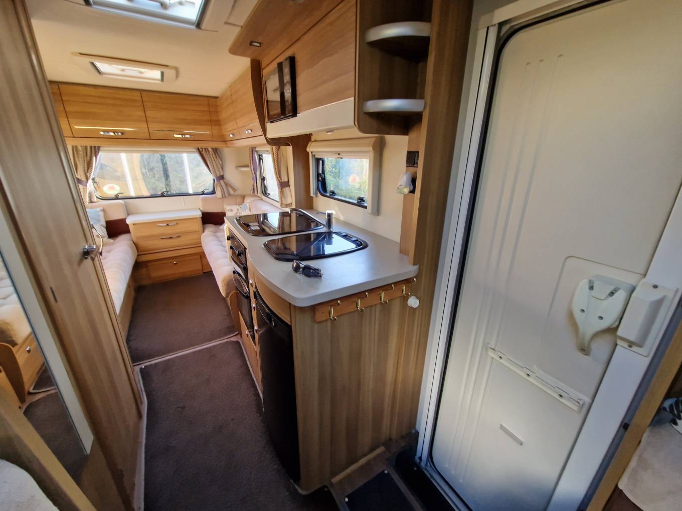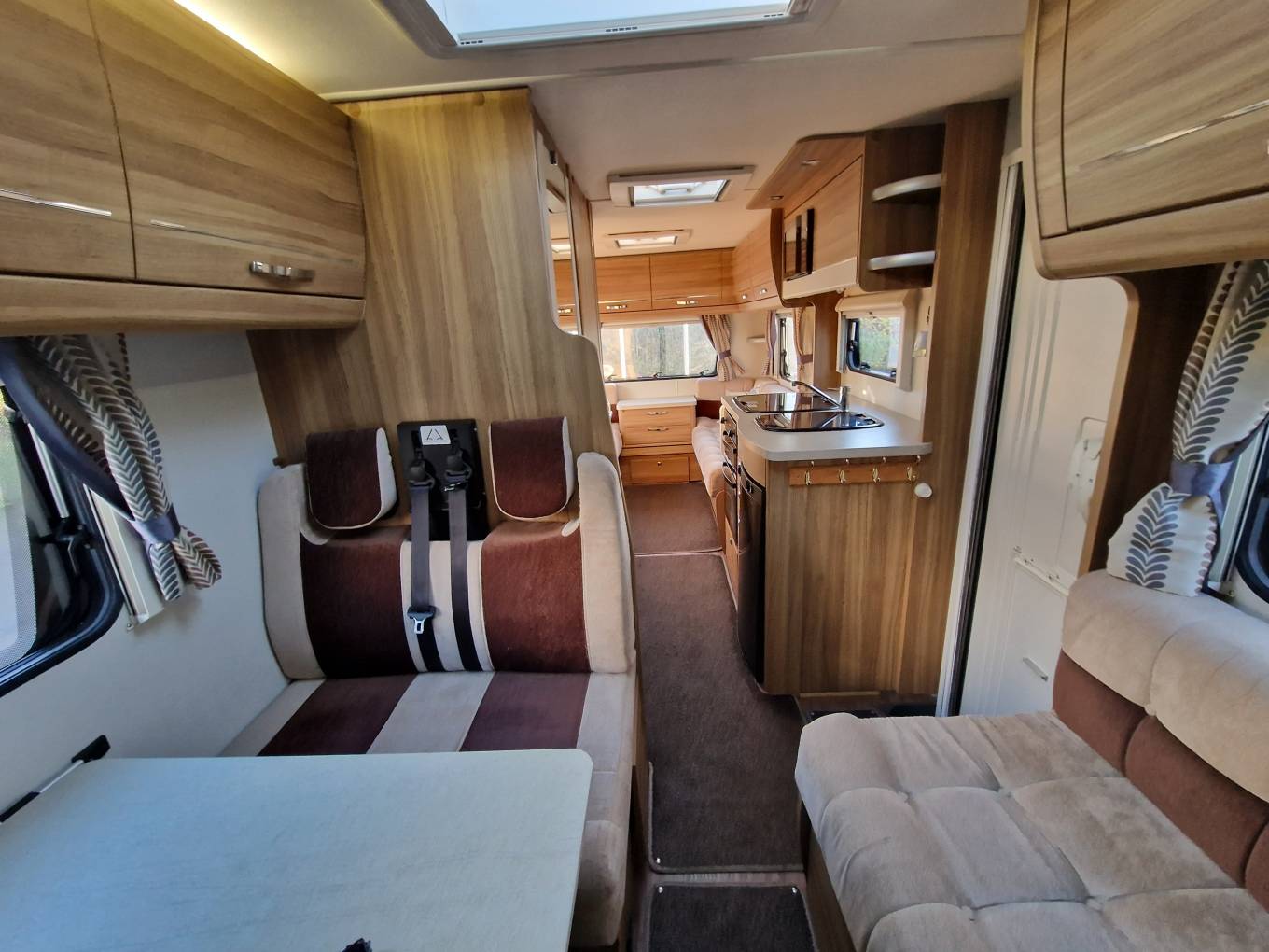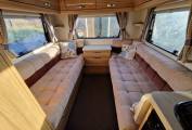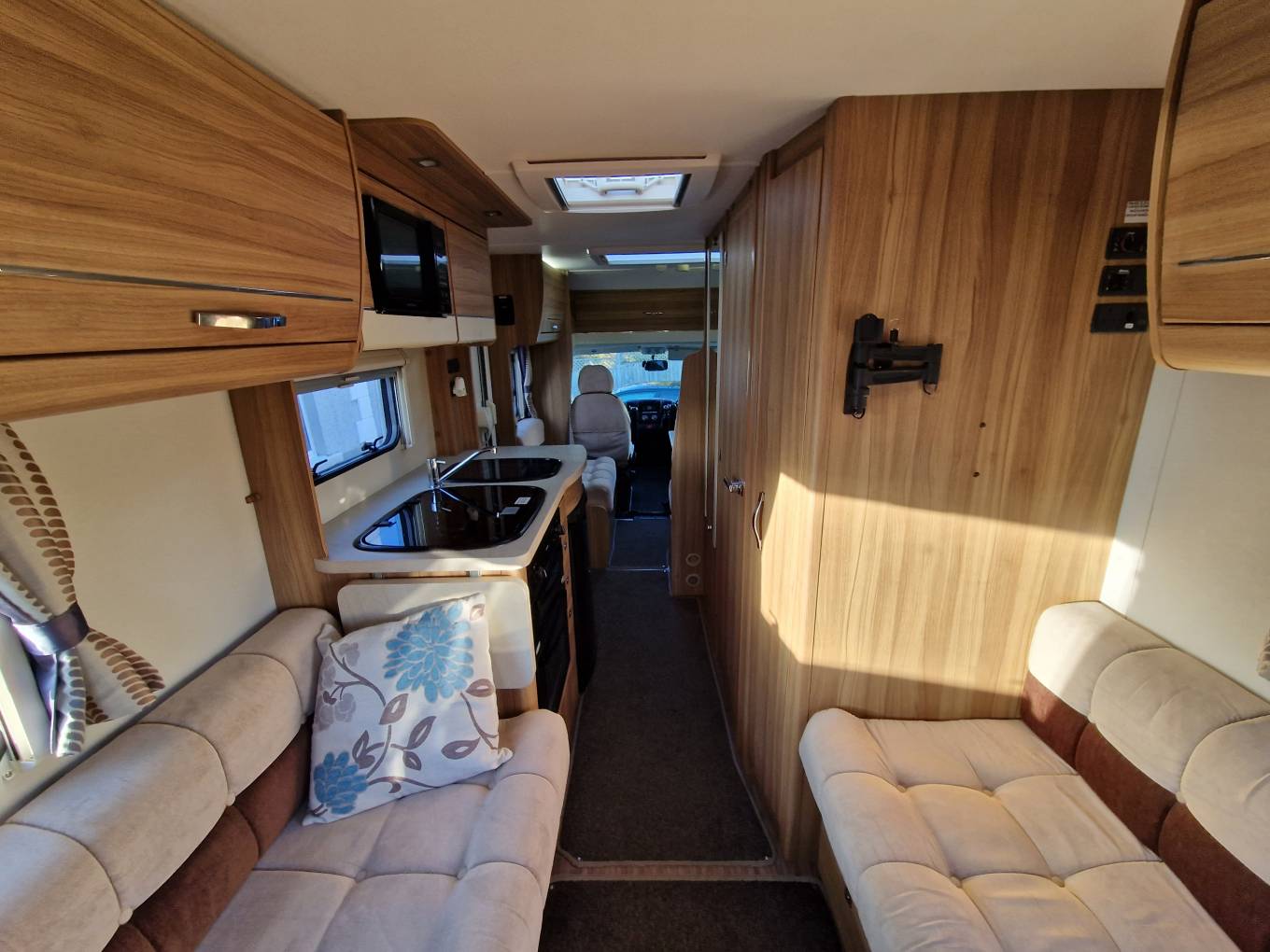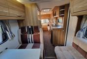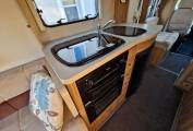 In the kitchen you will find a 3x Burner gas hob, Oven & Grill supplied by Thetford, Microwave, Sink with Hot and cold running water, Large 3-way Dometic fridge freezer, Adequate storage for all your kitchen needs, 240v power plugs and lighting.