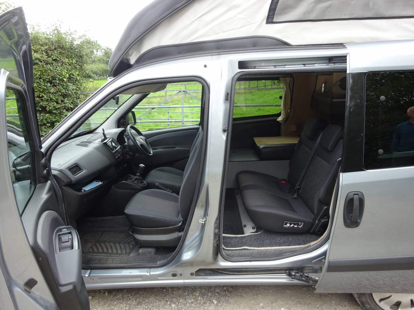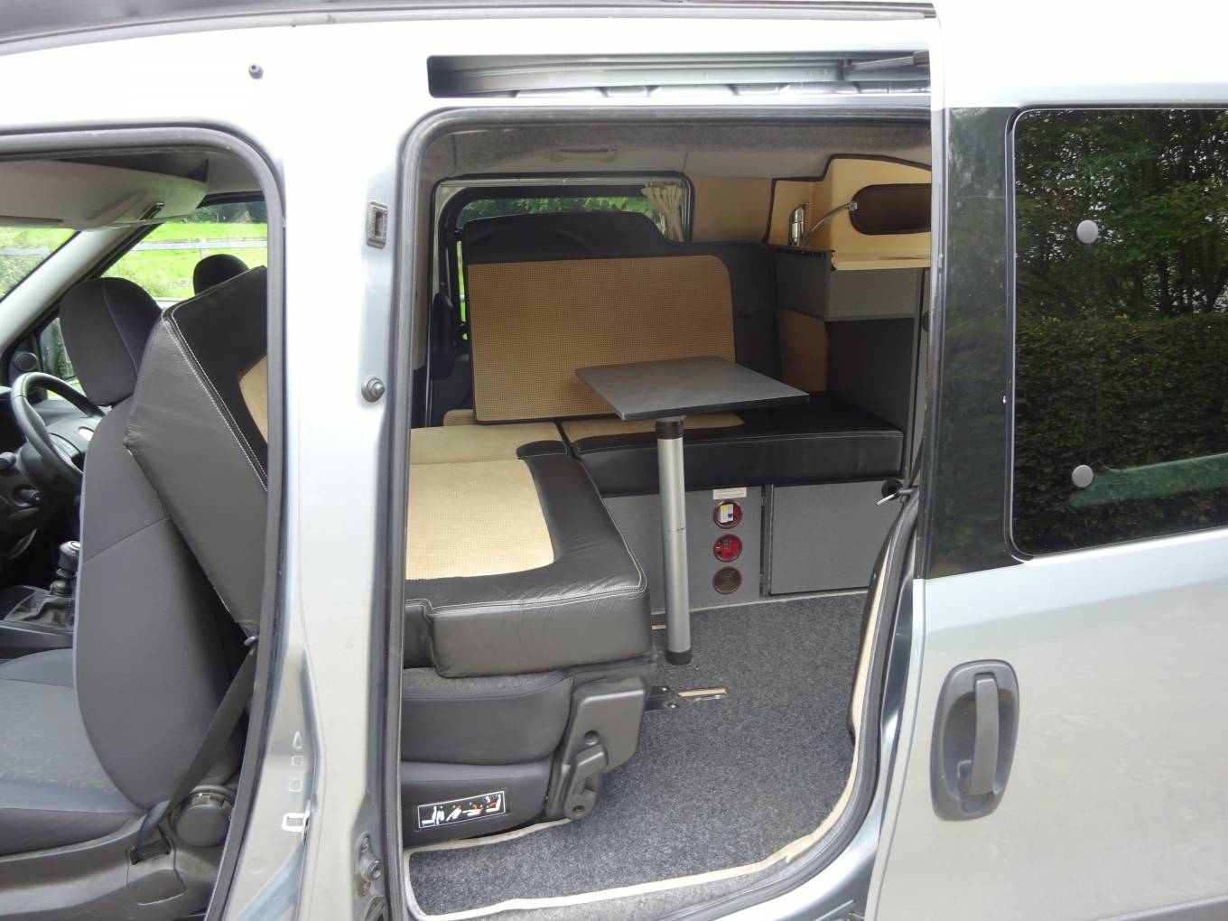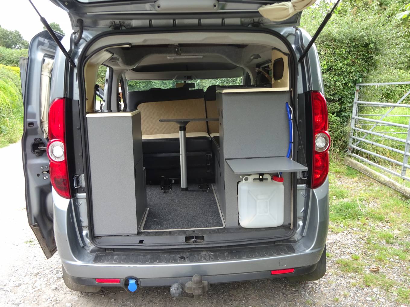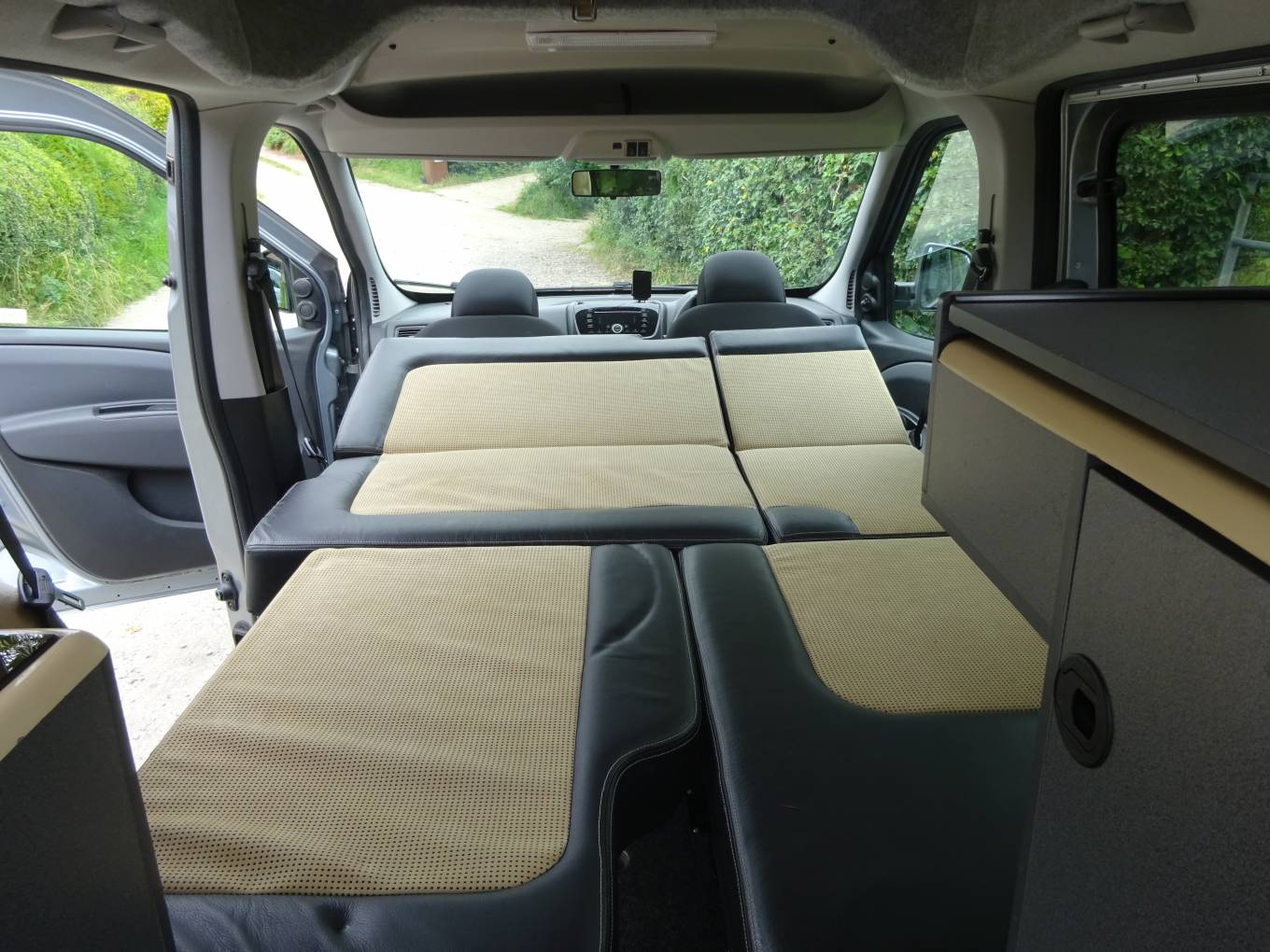 The dinette seating area could comfortably accommodate for two to four people. The appliances that are included in the compact but very comfortable camper includes, one ring Induction Hob, compact Mini Oven/Grill/Toaster, good sized sink which is serviced with 10 litre of stored water (cold water only) and plenty of storage. An inverter has been installed which allows you to use many mains appliances. The rear area easily converts into cosy sleeping area, which can be configured as either two singles or one double.