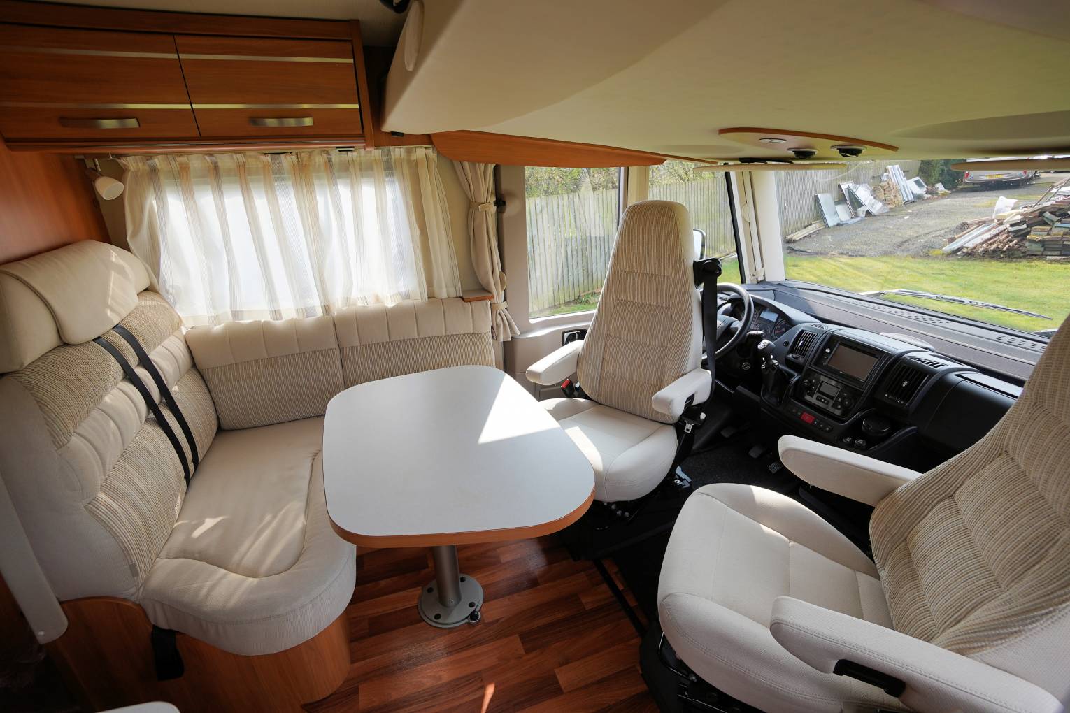 Based on a Fiat Ducato 2.3 litre (180hp) engine with a 6-speed gearbox complete with cab air-conditioning, cruise-control, reversing camera and electric mirrors. There are cab blinds fitted to the windscreen and curtains fitted to the side cab windows.