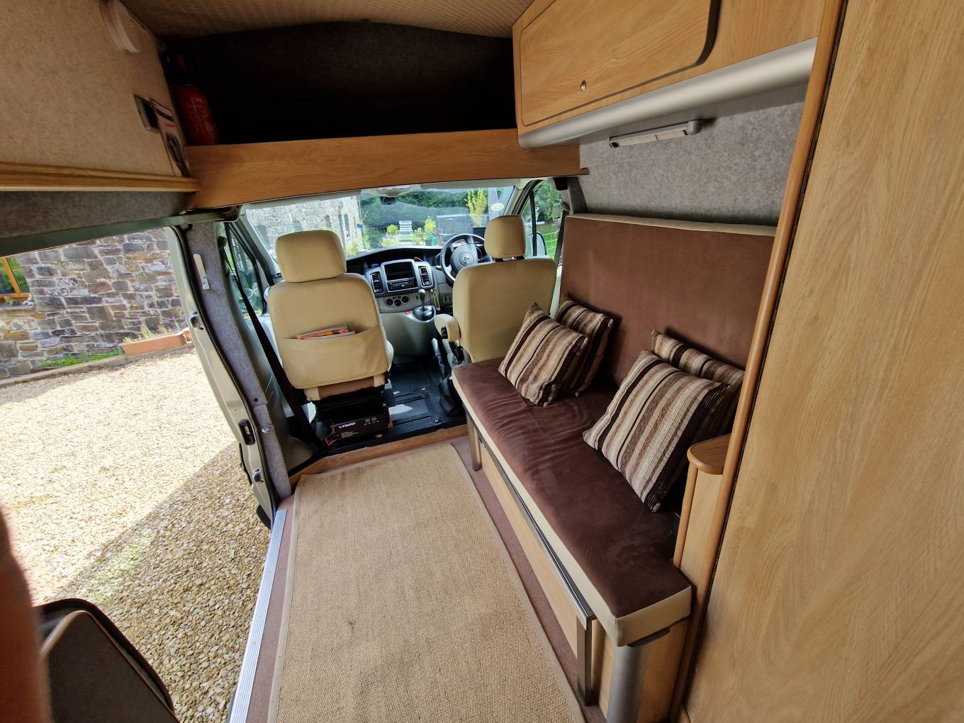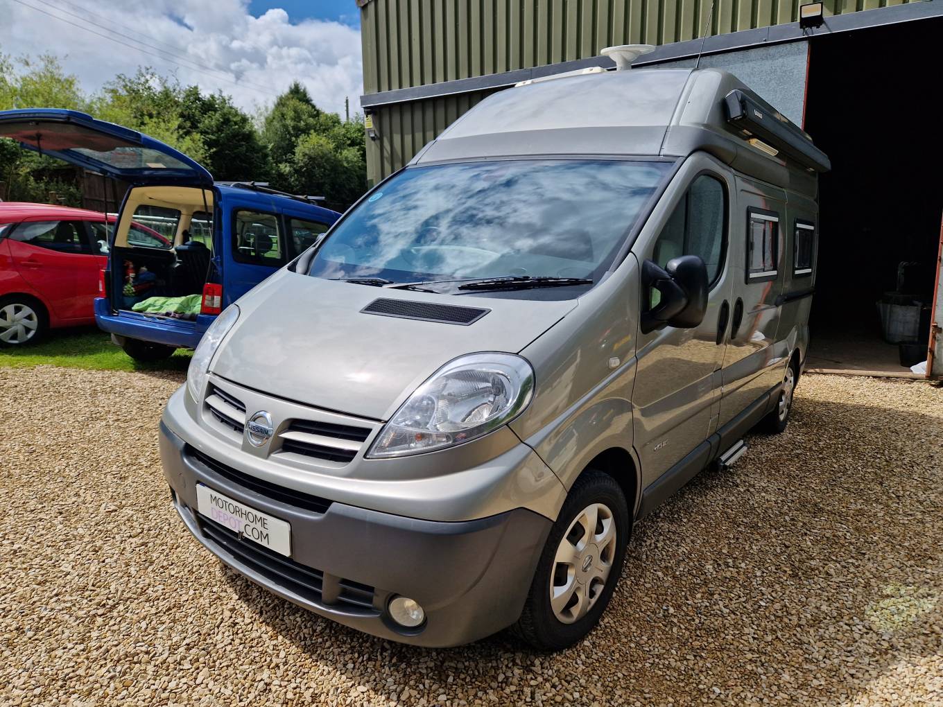 Based on the Nissan Primastar SE+ LWB with the ultra-reliable chain-driven 2.0 DCi diesel engine and 6 speed automatic gear-box, the mileage is an amazing 13,000 miles with a brand new MOT and service history. Being the Hi-Top, you have ample standing room without all the hassle of a pop-top, and this camper offers the space not always provided with two berth camper conversions with plenty of storage including over the cab.