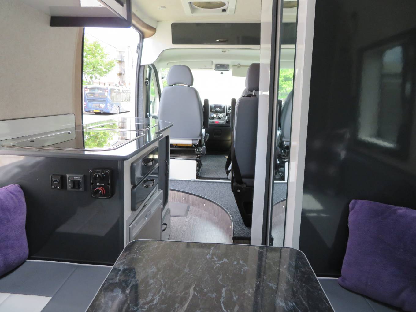 MOT to May 2021. Professionally converted by Arrow Campers in 2018 this bespoke van has got everything you need. 2 berth but with 4 belted seats (plus 2 side-facing lap belts to rear - advised for adults only). Thetford toilet & shower with space-saving sliding door. Whale water heater, water pump and Propex blow heating. 3 ring Domestic hob with overhead integrated microwave/oven/grill. 15L LPG tank under van. Coolmatic Compressor electric fridge with freezer compartment. Dining area to rear converts to double bed with the option to leave bed made up and swivel both driver & passenger seats to create front dining (both dining tables are removable). TV socket with wing antennae (never used), 2 roof vents (one is remote controlled Maxxfan Deluxe air conditioning unit). Floor lighting, reading light to rear & spot lights throughout. Numerous electric/charger/USB points. Electric hook up, gas BBQ hook up, removable tow bar. Two leisure batteries plus solar panel. Trim is in eye-catching shades of grey/black/white with high gloss units and black, marble effect worktops and black fitted blinds. Plenty of storage above cab, top cupboards & under seats. Fire extinguisher. Grey/black decals. Wind out Fiamma awning. Reverse sensors.
