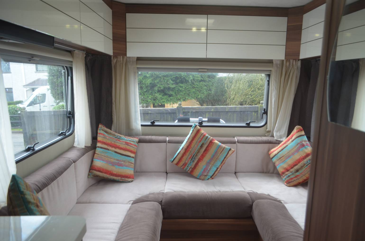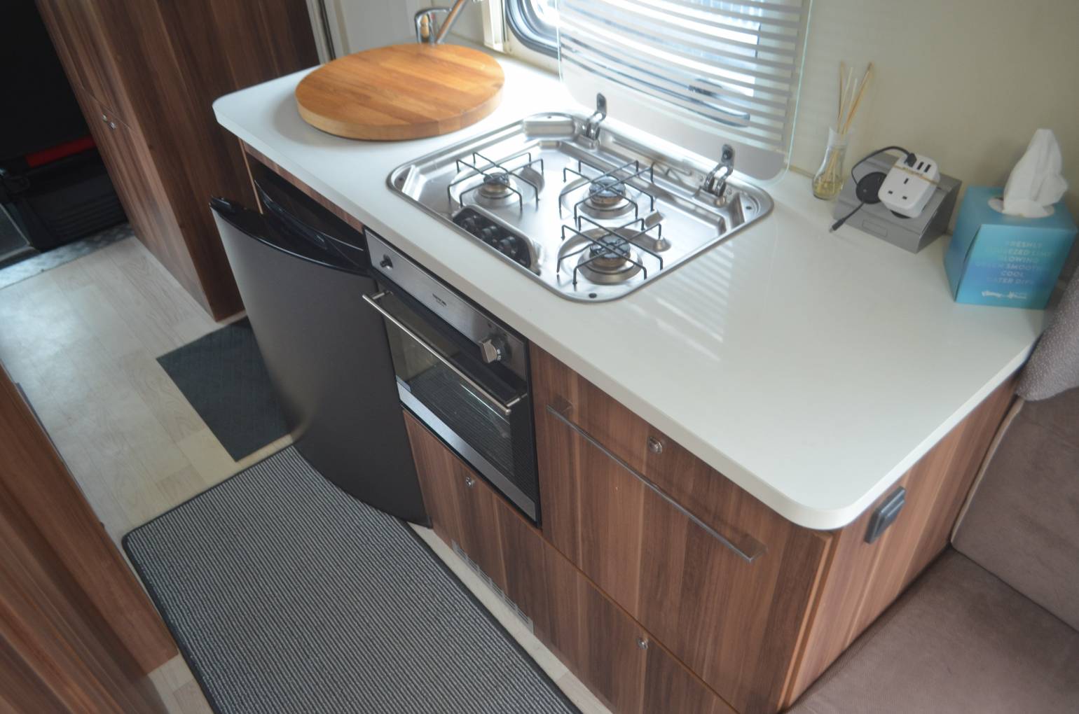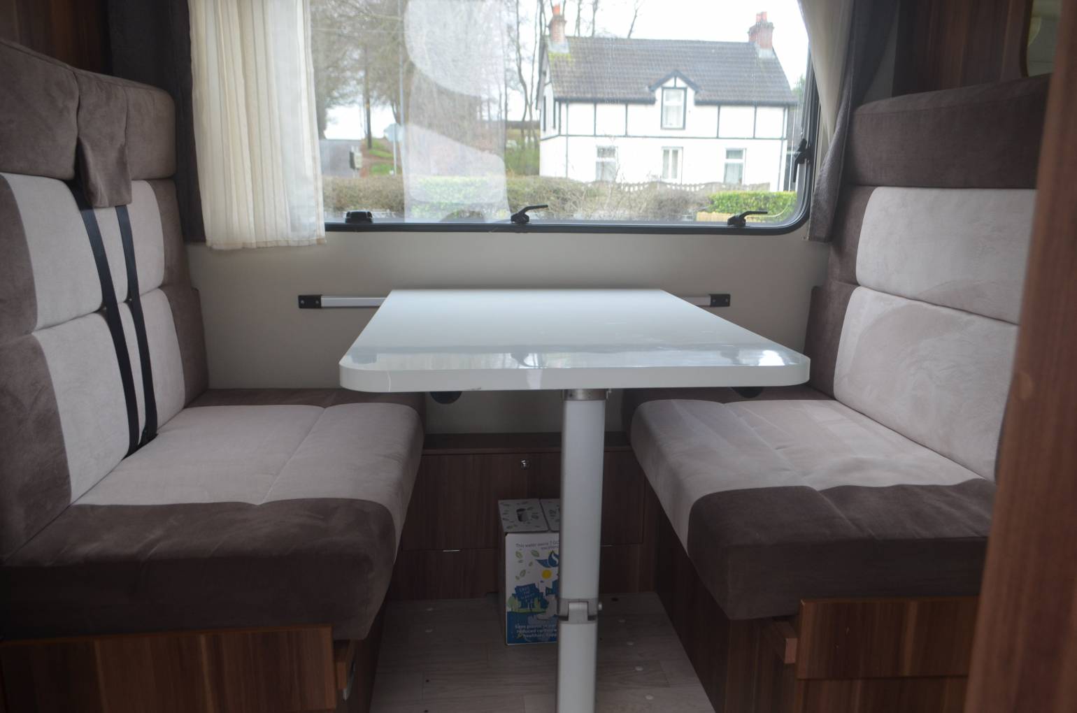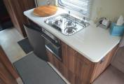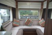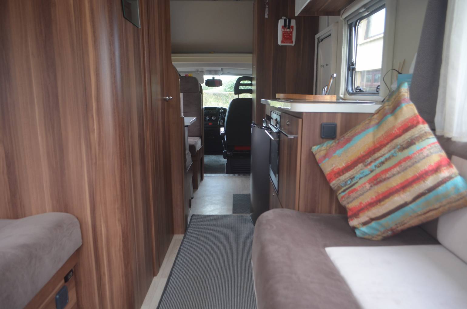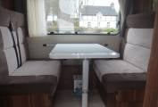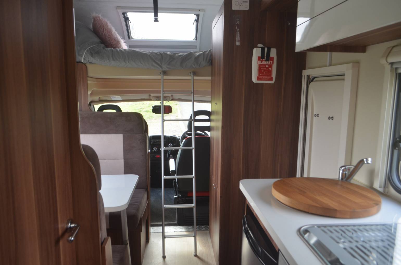 Sleeping places for 6 people and 6 travelling seat belts. The popular U shaped lounge can be used for dining, sleeping and relaxing. Dinette converts into a double bed and there is a king size bed above the cab area. Wash room has a separate shower, wash hand basin, cassette toilet and a vanity mirror. Mid ship kitchen is fully equipped with a 3 burner gas hob, oven, sink, 3 way fridge freezer and good work space. Excellent storage throughout the habitation area.