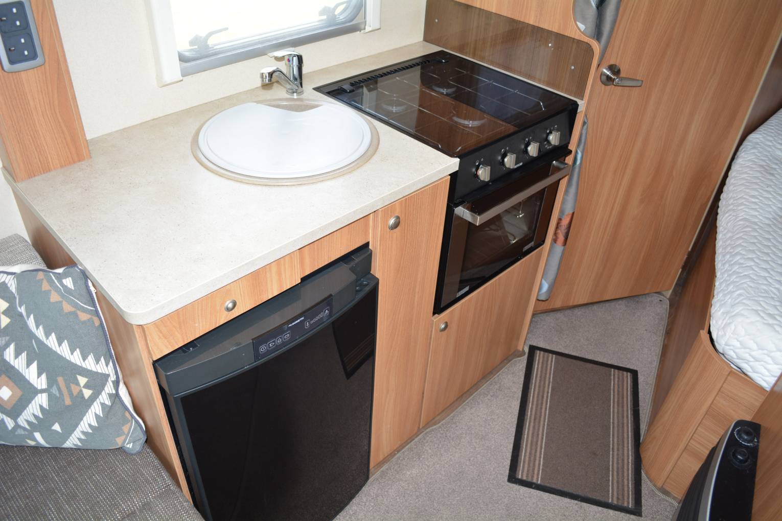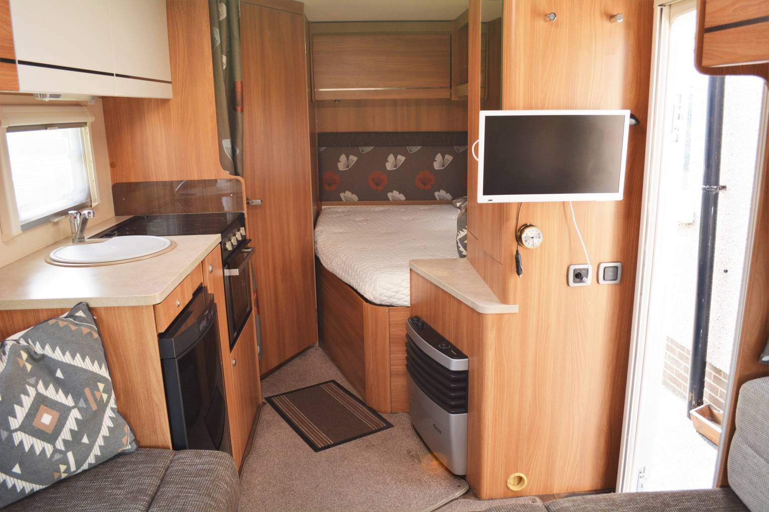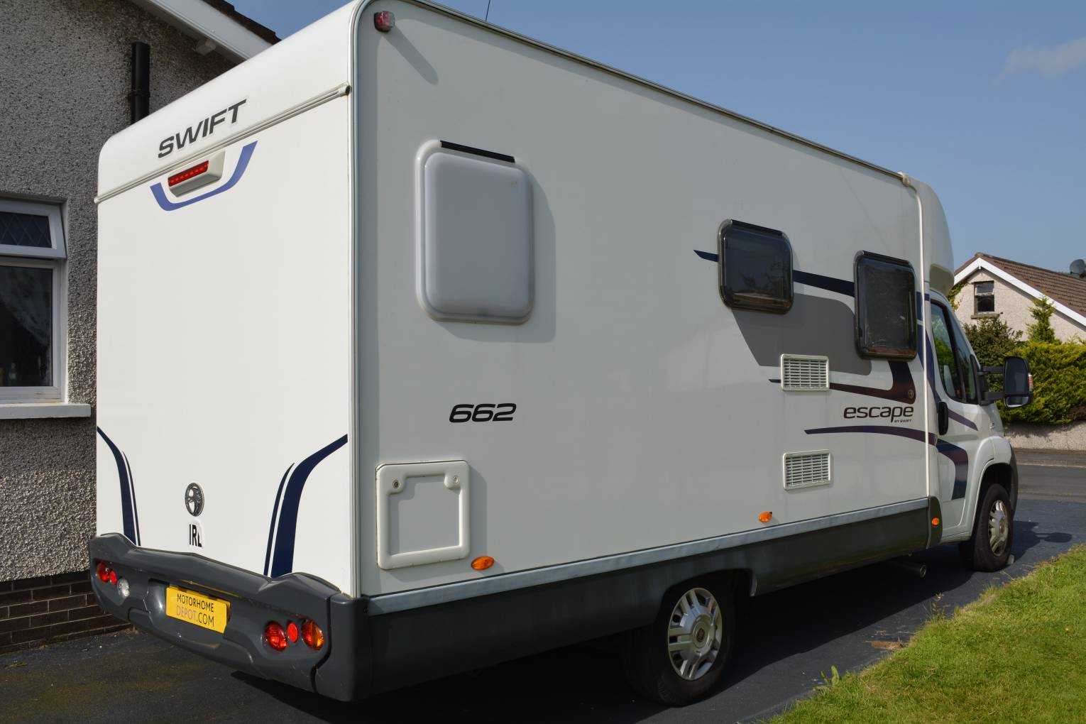 2014 SWIFT ESCAPE 662 FOR SALE. Based on a Fiat Ducato 2.3 130bhp engine with 6 speed manual transmission. This 2 berth motorhome is presented in great condition with 2 travelling seat belts. Mileage at present 13,746 with service history. Maximum weight is 3650kg, measuring approx 6.72 metres in length and 2.2 metres in width. Cab area includes 2 swivelling captains chairs, radio, cruise control, power assisted steering, electric windows and mirrors, central locking and cab air con. Your front lounge area has 2 comfortable bench seats with a stowaway table for dinning. Kitchen area is fully equipped with an oven, grill, 3 gas burner hob, sink and a Dometic 3 way fridge/freezer. Washroom has a cassette toilet, wash hand basin and shower. There is a fixed french bed at the back with storage space underneath. Storage lockers and wardrobe space throughout the habitation area. Extras fitted include a wind out awning and a TV.