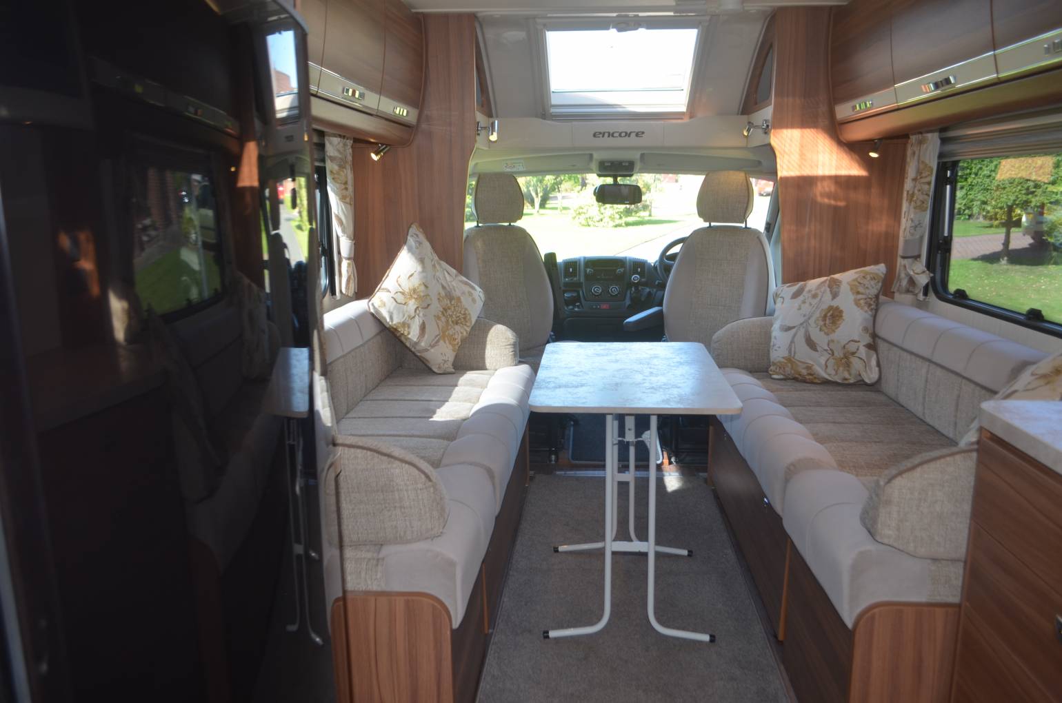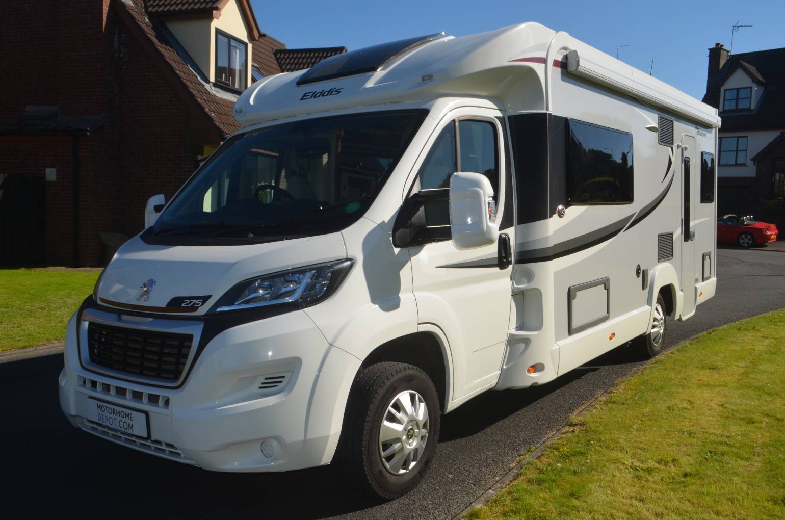 2016 ELDDIS ENCORE 275 FOR SALE. Based on a Peugeot boxer chassis with a 2300 cc engine and 6 speed manual gear box. Max weight is 3500kg, length 7.41 metres and width 2.2 metres. Mileage at present is 9847. This luxury 2 berth motorhome has 2 travelling seat belts and comes with habitation service and engine service. Cab area includes 2 swivelling captains chairs, radio. cruise control, power assisted steering, Remi blinds, electric windows, electric mirrors, central locking, alarm system, reverse camera and cab air con. Your generous front lounge has a stowaway table and the comfortable bench seats convert into a large double bed. Spacious kitchen comes fully equipped with a full sized cooker, sink and a large 3 way fridge freezer. The washroom is to the rear and is very spacious with a separate shower enclosure, wash hand basin, toilet and a wardrobe. This motorhome is in excellent condition throughout.