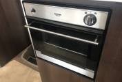 Kitchen with hob, oven with grill, sink, fridge/freezer and storage.