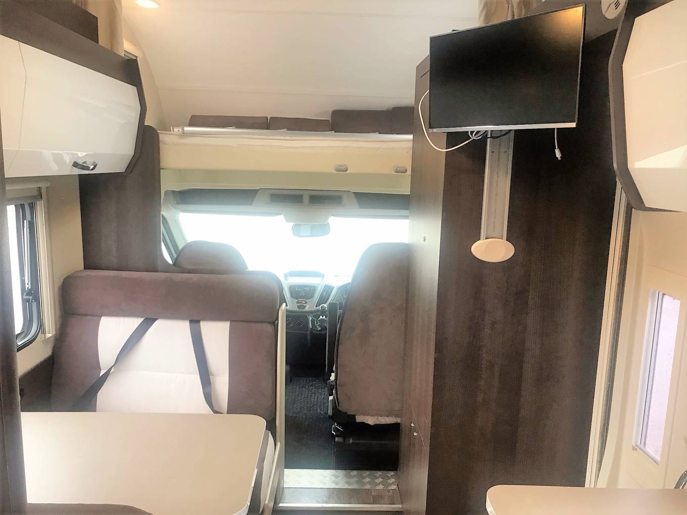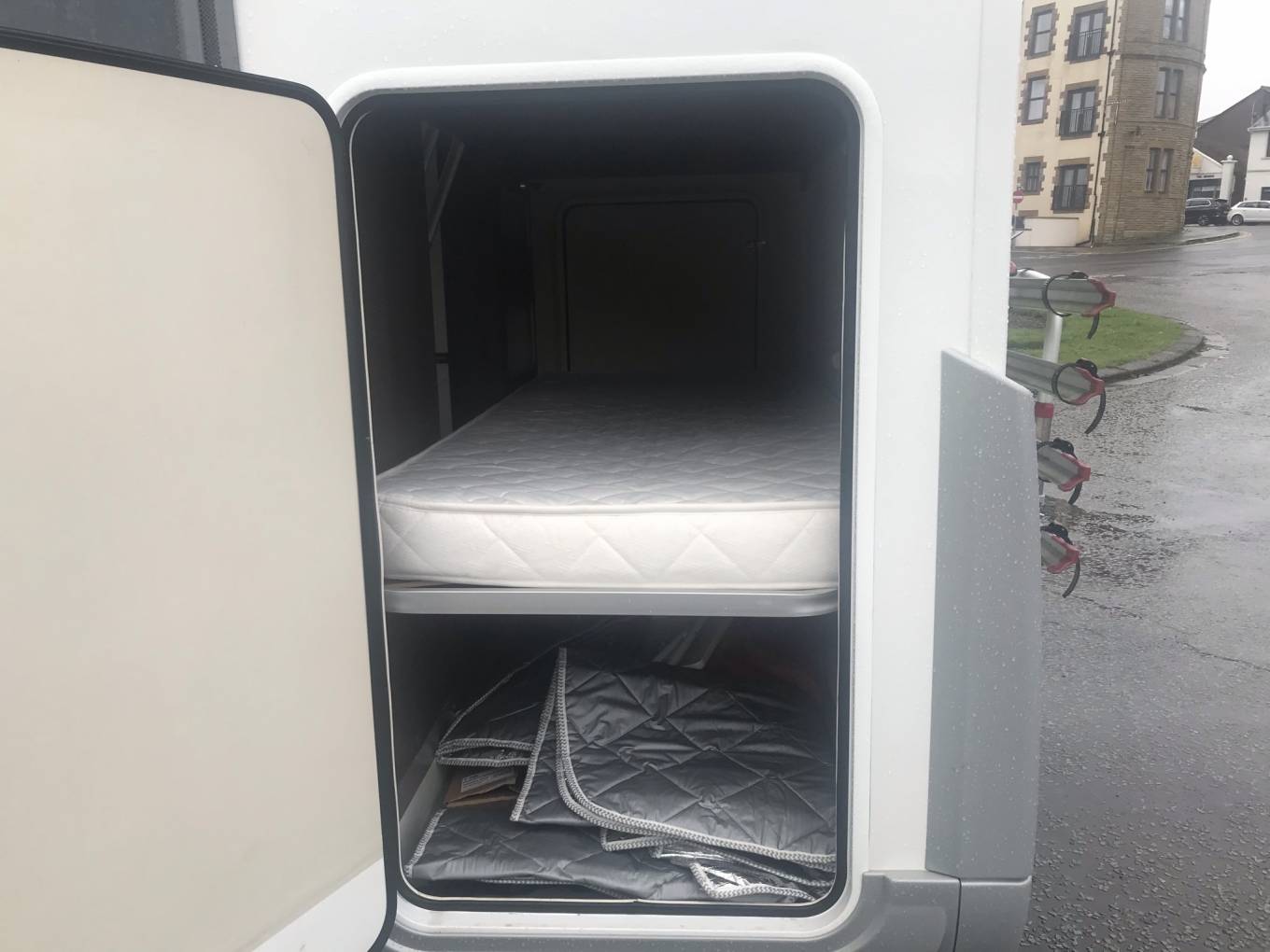 With over cab bed and 2 rear bunks (the bottom which folds up to form part of the garage space when travelling, meaning you can easily stow away chairs, BBQ's or bikes).