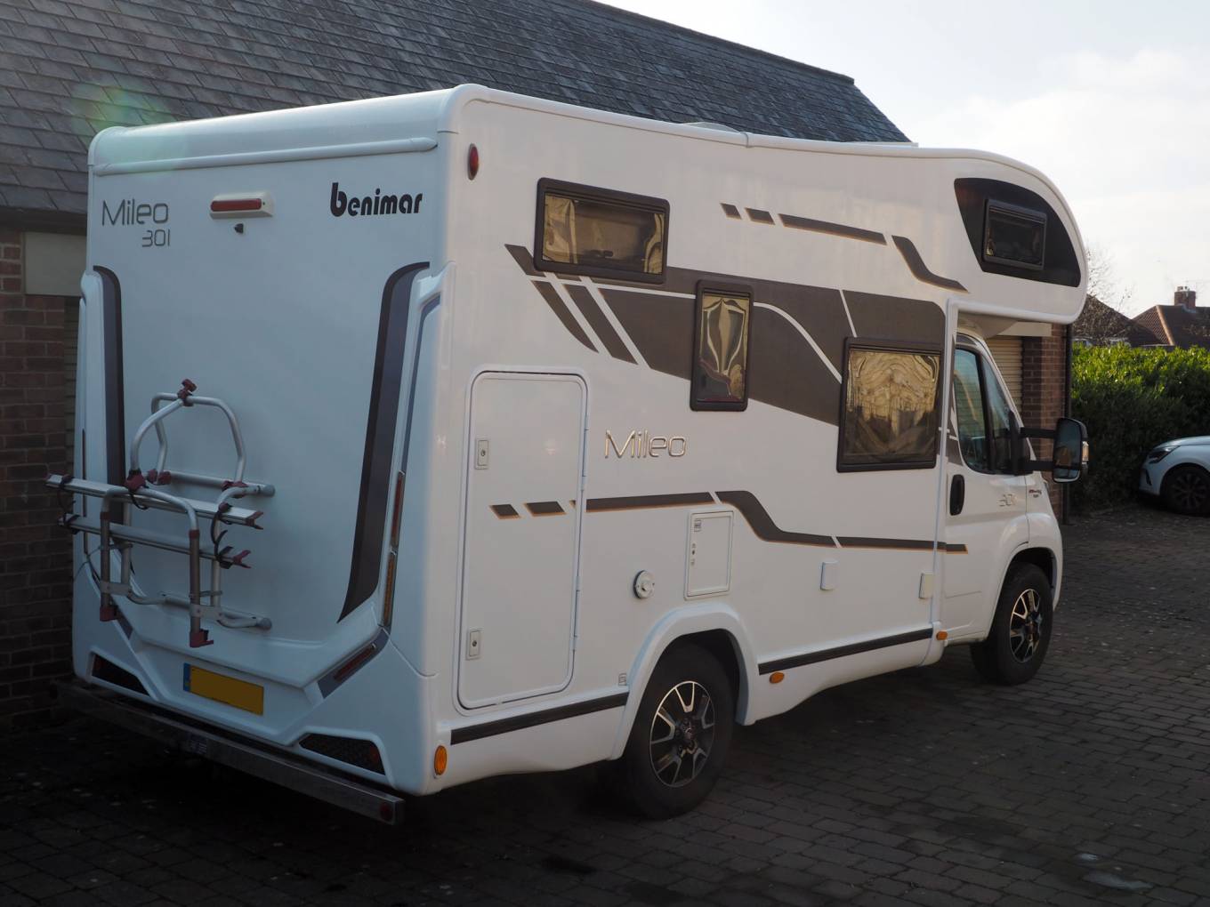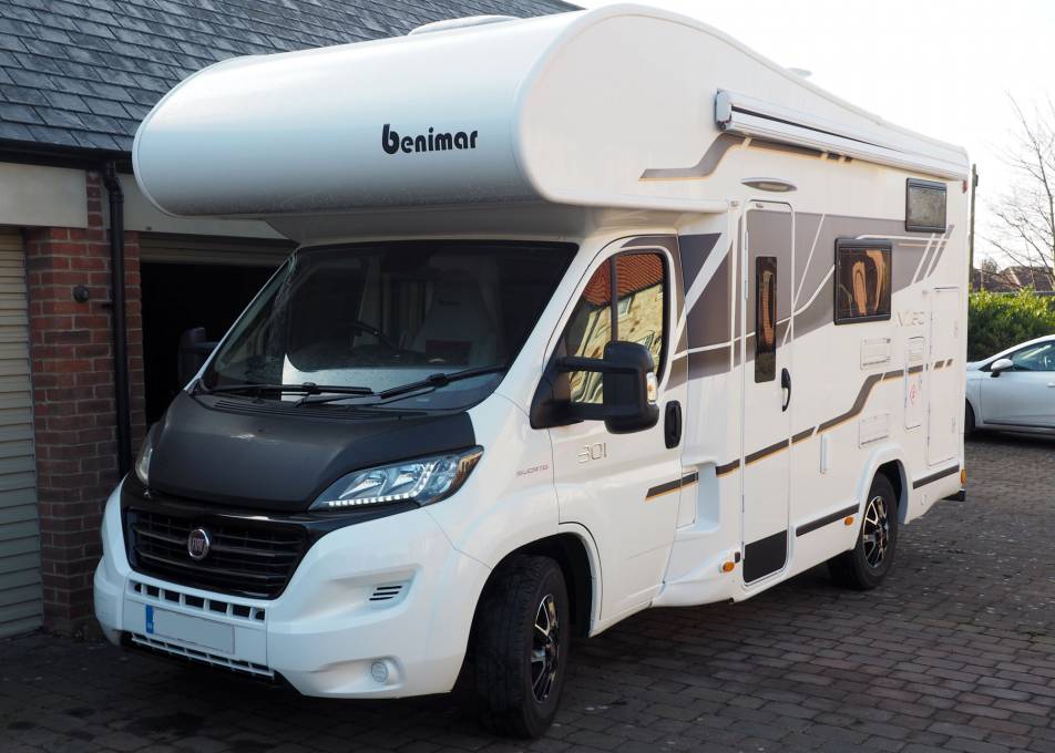 Fantastic specification compact 4 berth motorhome with garage, at just 5.95 metres long excluding bike rack the Benimar can go just about anywhere and can be driven on a standard car licence. This is a great vehicle for hobbyists and adventurers, having refillable gas bottles, solar panel, awning and bike rack, towbar, adjustable height garage with access both sides, a very versatile motorhome indeed.