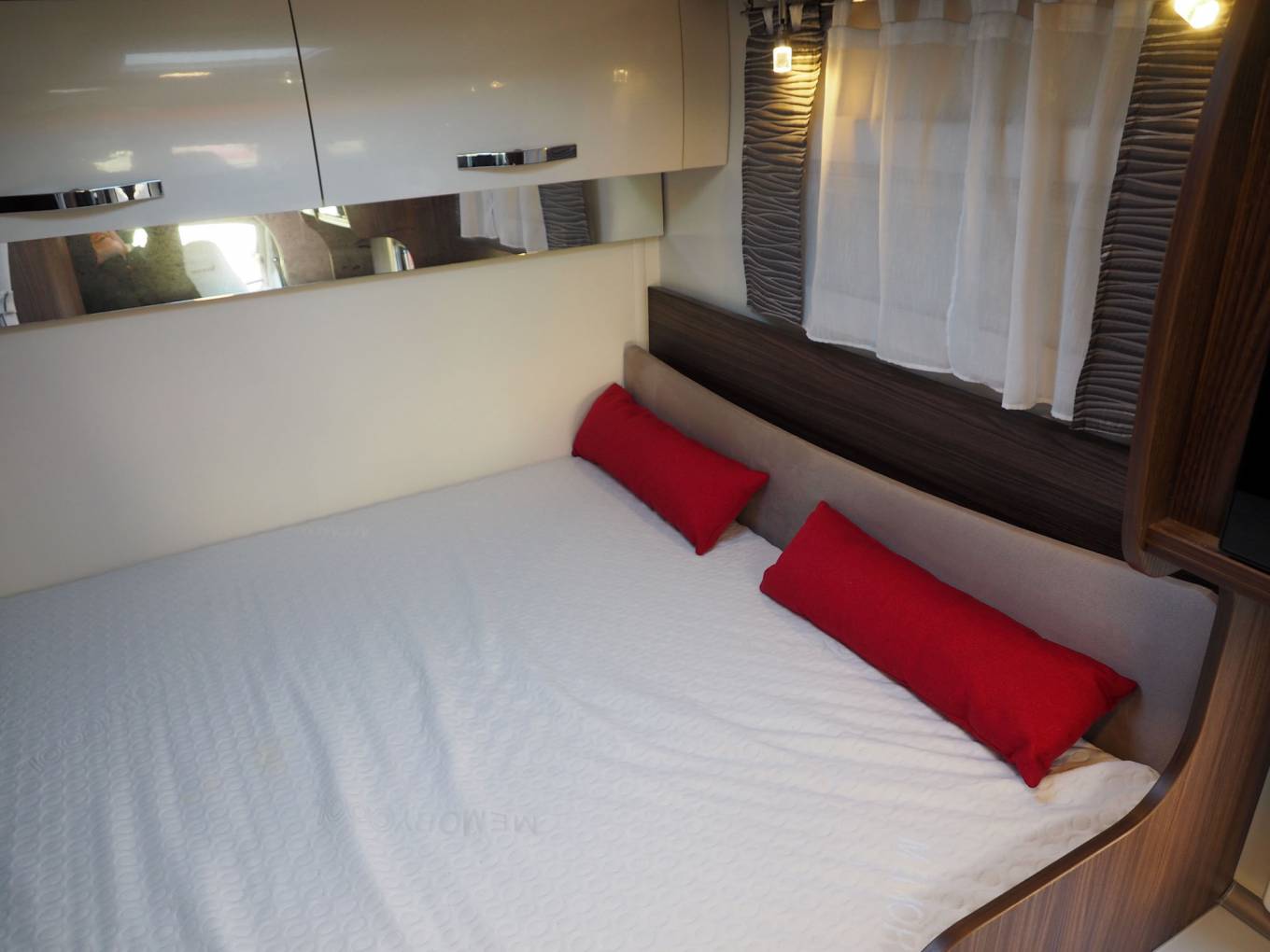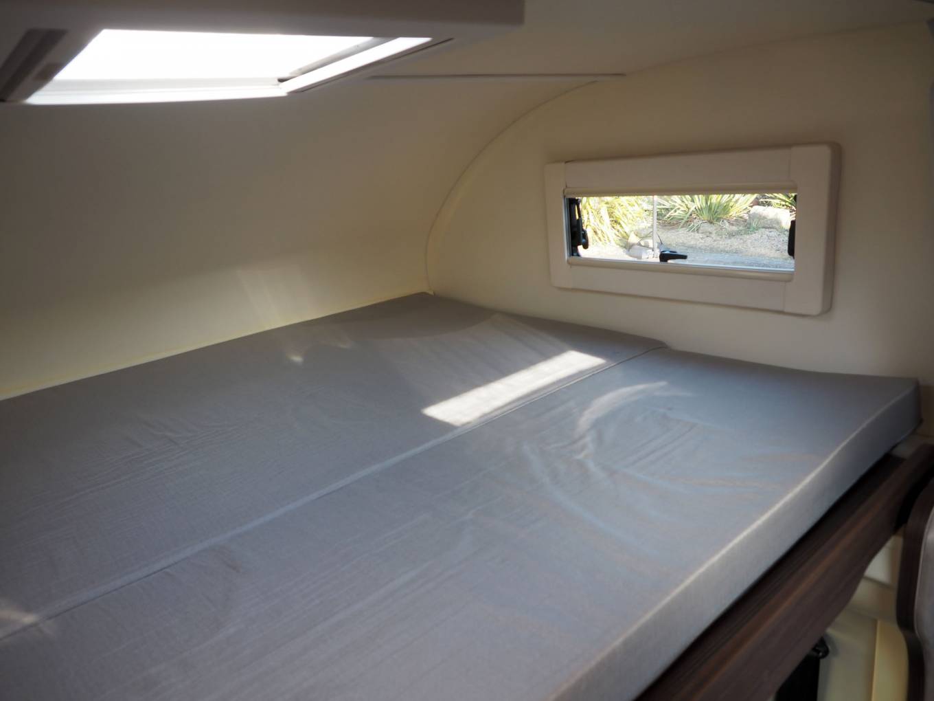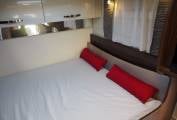 Up front the cab controls are light and include enhancements such as integrated blinds, cab air conditioning, cruise control, multimedia unit with TomTom satnav and reversing camera. 150bhp Fiat Ducato base with 6 speed gearbox. Outside fitted equipment includes roll out sun canopy, solar panel, bike rack for up to 4 bikes, external shower, external bbq point, towbar, access to gas bottles and filling point. The bonnet has been wrapped to prevent stone chips and sun degradation. The heated rear garage has a maximum internal height of 1.25 metres with access both sides. There is also a Vango Kela inflatable annexe available by separate negotiation.