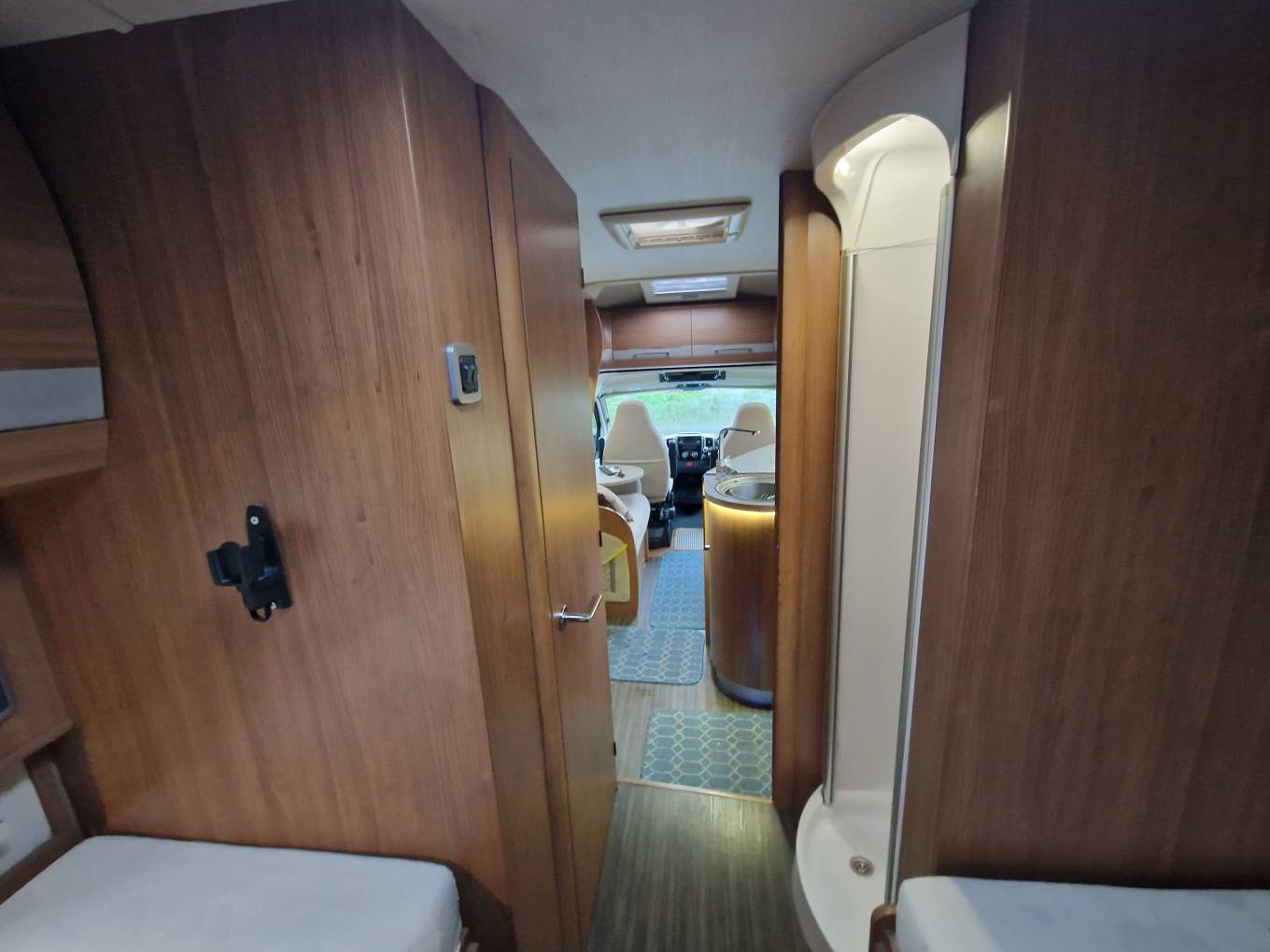 Motorhome Depot are pleased to present this extremely clean 2016 Auto-Trail Frontier Savannah Luxury Low Profile 4-Berth Coach-built Motorhome with Twin fixed rear beds, spacious living area, separate shower & Toilet with Garage. Based on the Fiat Ducato, this has the ultra-reliable 2.3 diesel engine which produces 150BHP coupled with the 6-speed gearbox and has only covered 21000 miles with 1 owner. It has service history with a cambelt change and has a fresh habcheck to givew the next owner peace of mind.Overall,this is in great condition and has been really cherished by its current owners and it is a credit to them.