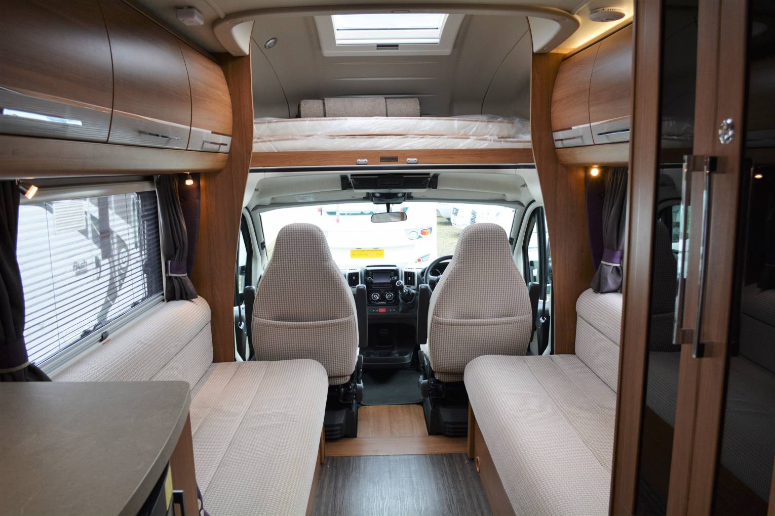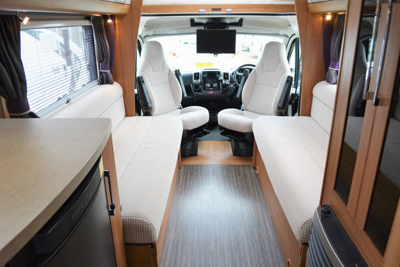 2016 Auto Trail Tracker EKS High line 4 berth Motorhome for sale. Presented in beautiful condition both inside and out this Tracker model offers refined luxury with a comprehensive specification list to match. Measuring only 6.44 m in length and a max weight of 3500kg powered by a 2300cc Euro 6 multi jet engine which has only covered just over 9600 miles. Some of the specification includes end kitchen with full cooker, 96L fridge freezer and microwave, washroom with separate shower, spacious lounge area which can be used as two single beds or a large 2080 mm x 1690 mm double,Tansy Lux upholstery complimented by a large panoramic sunroof and Avtex drop down TV, large over cab bed area, twin swivel chairs, air conditioning, cruise control, touchscreen audio with sat nav, recessed awning, back up reverse camera, bike rack, external shower and BBQ point and a 100 watt solar panel. PART EXCHANGE AND FINANCE AVAILABLE. PLEASE CALL FOR FURTHER DETAILS.